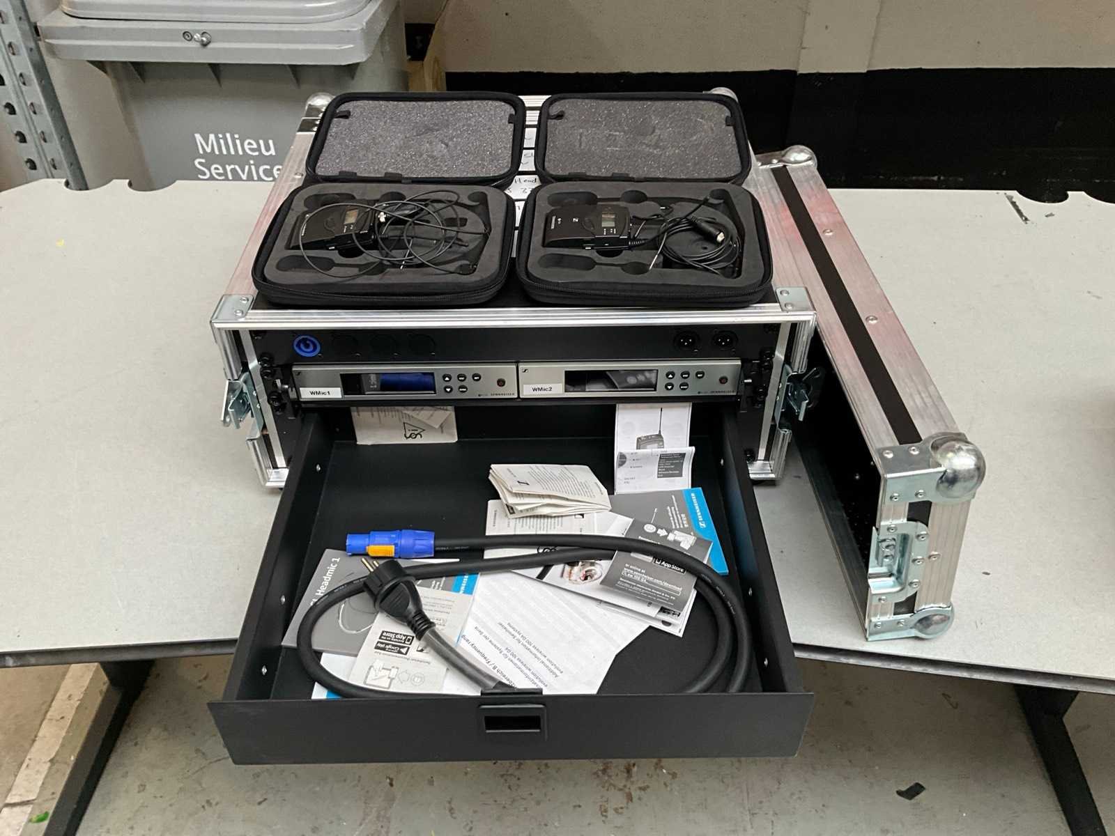 Voorzien van 2x Beltpack met headset en 2x G4 ontvanger; in flightcase Merk: Sennheiser