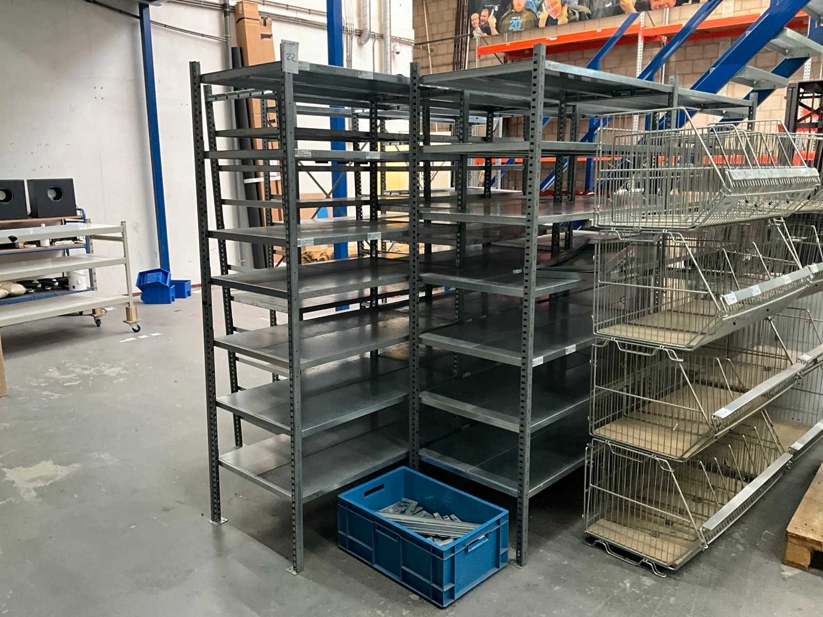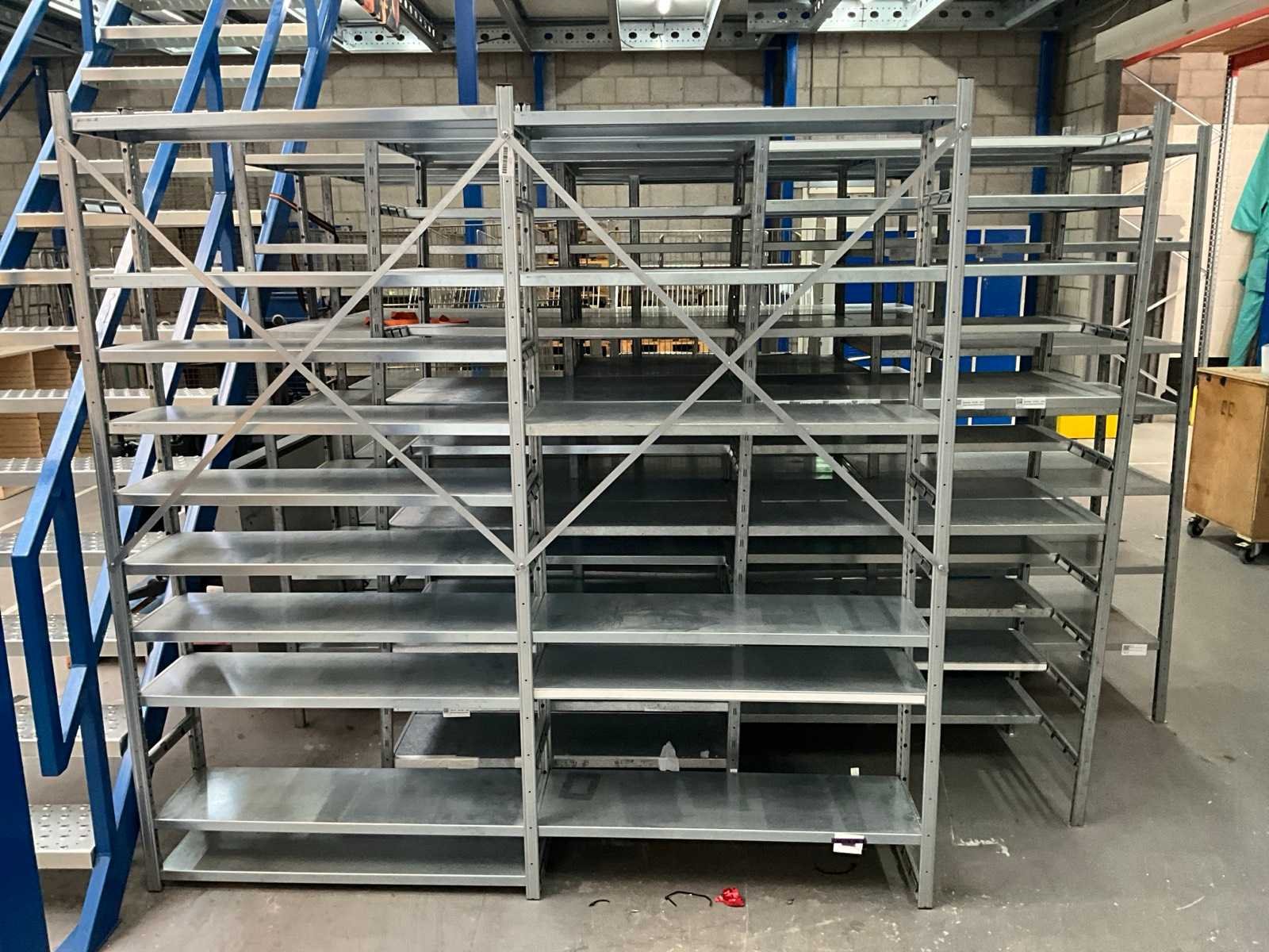 Diepte: 300 en 600mm; afmeting legbord: 30x100cm Aantal secties: 9 Sectie afm. b: 1000mm Sectie afm. h: 2000mm Aantal legborden: 115 Demontabel: true