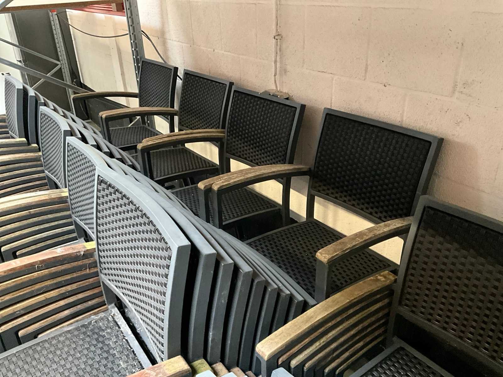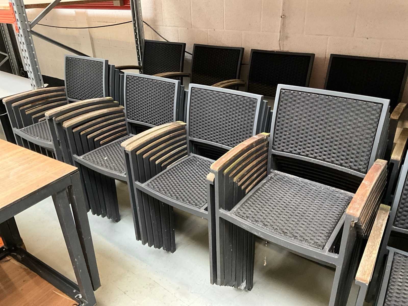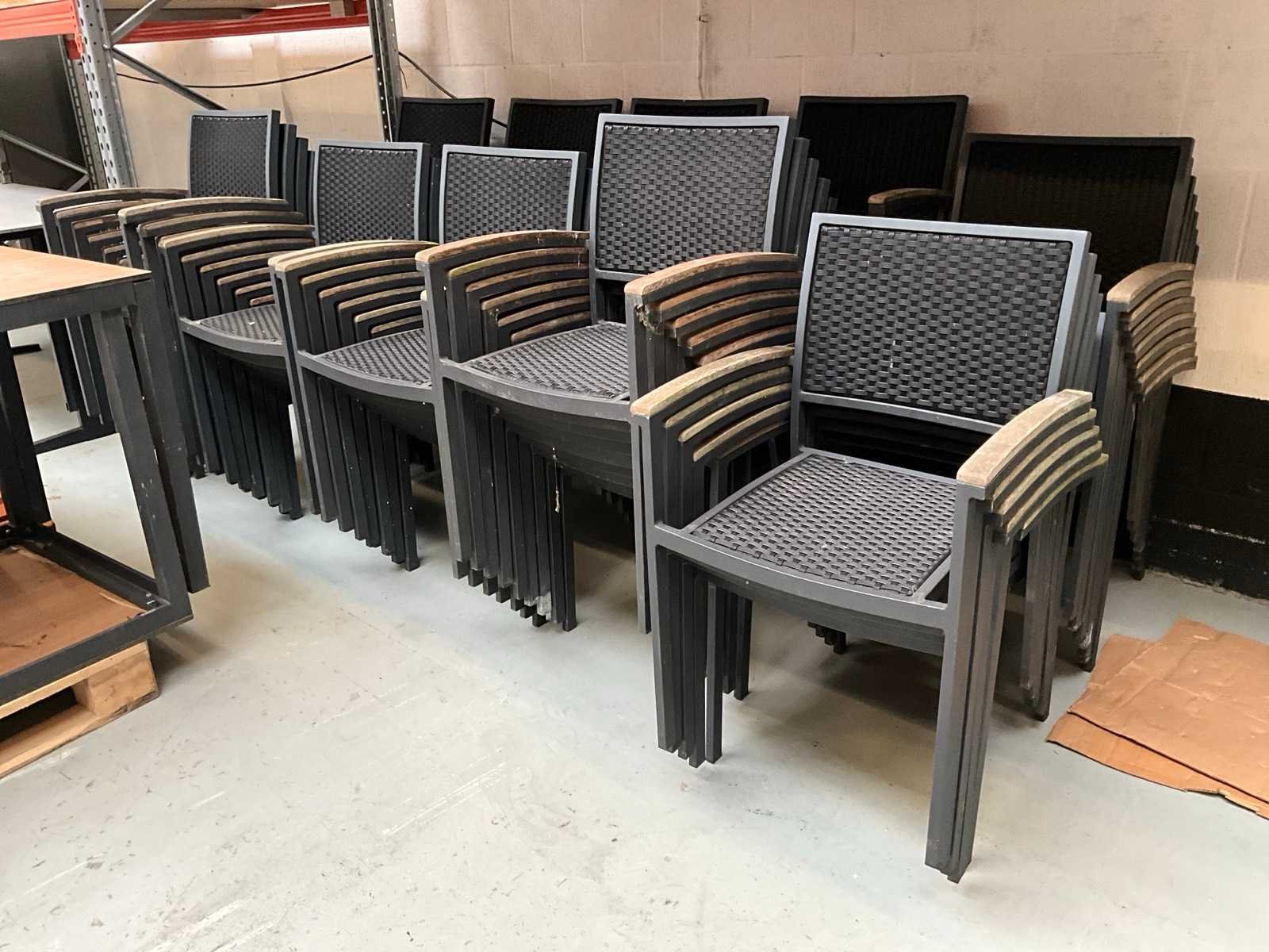 Bestaande uit: 4x Satelliet barstoel, 43x Satelliet terrasstoel met armleuning, 2x bartafel H100xB80cm, 12x terrastafel H74xB80cm en 2x terrastafel H74xL140xB80cm
