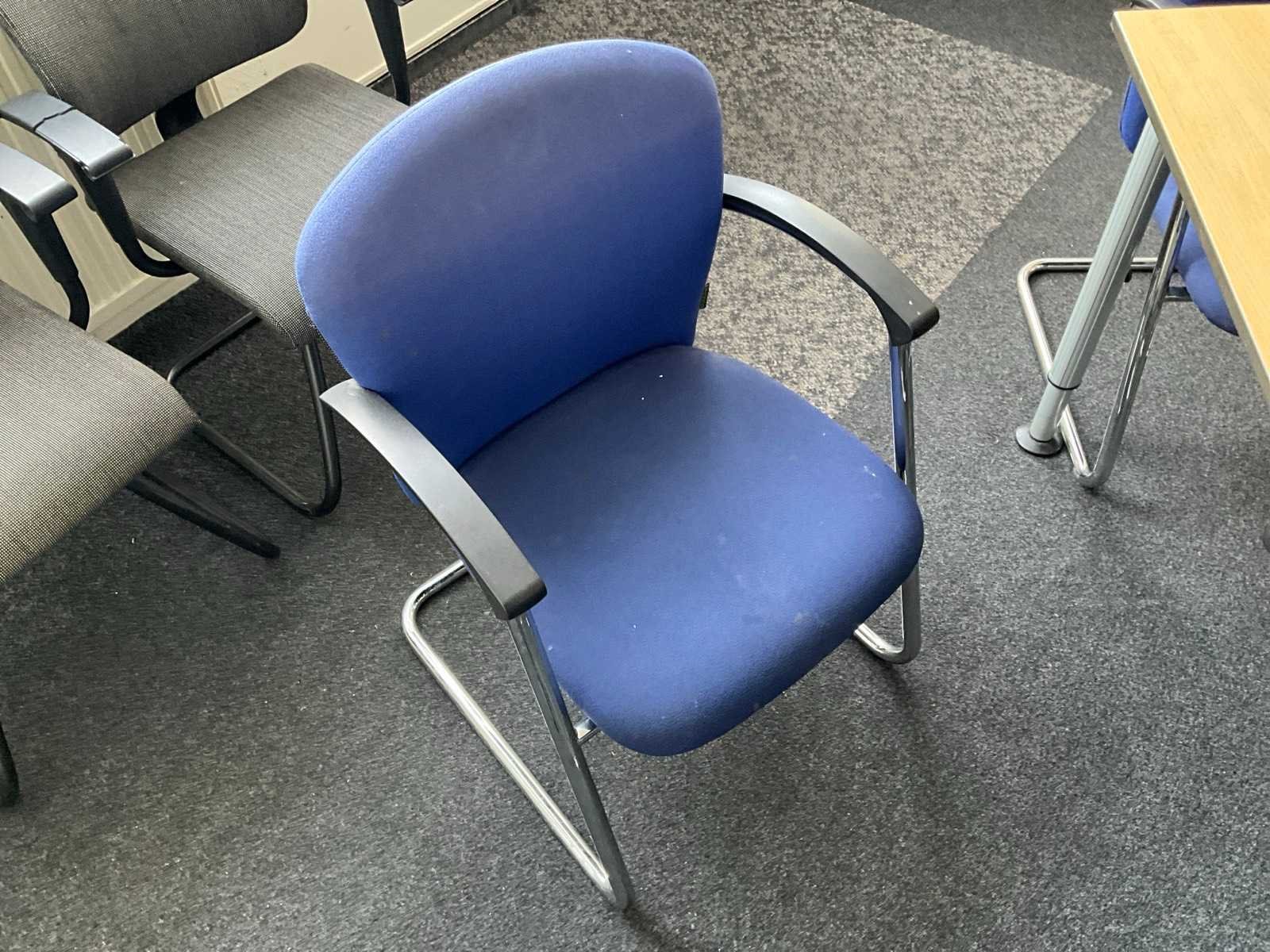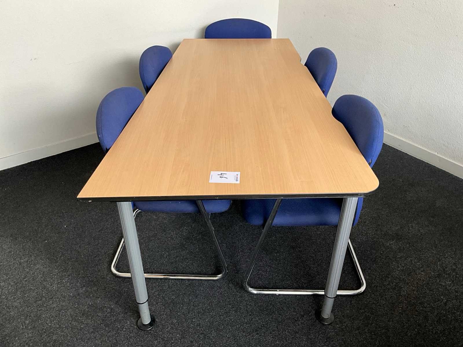 In hoogte verstelbaar; breedte 80/100cm; inclusief 10x Dauphin vergaderstoel met sledeframe en 2x Ahrend 240 vergaderstoel Lengte: 200cm