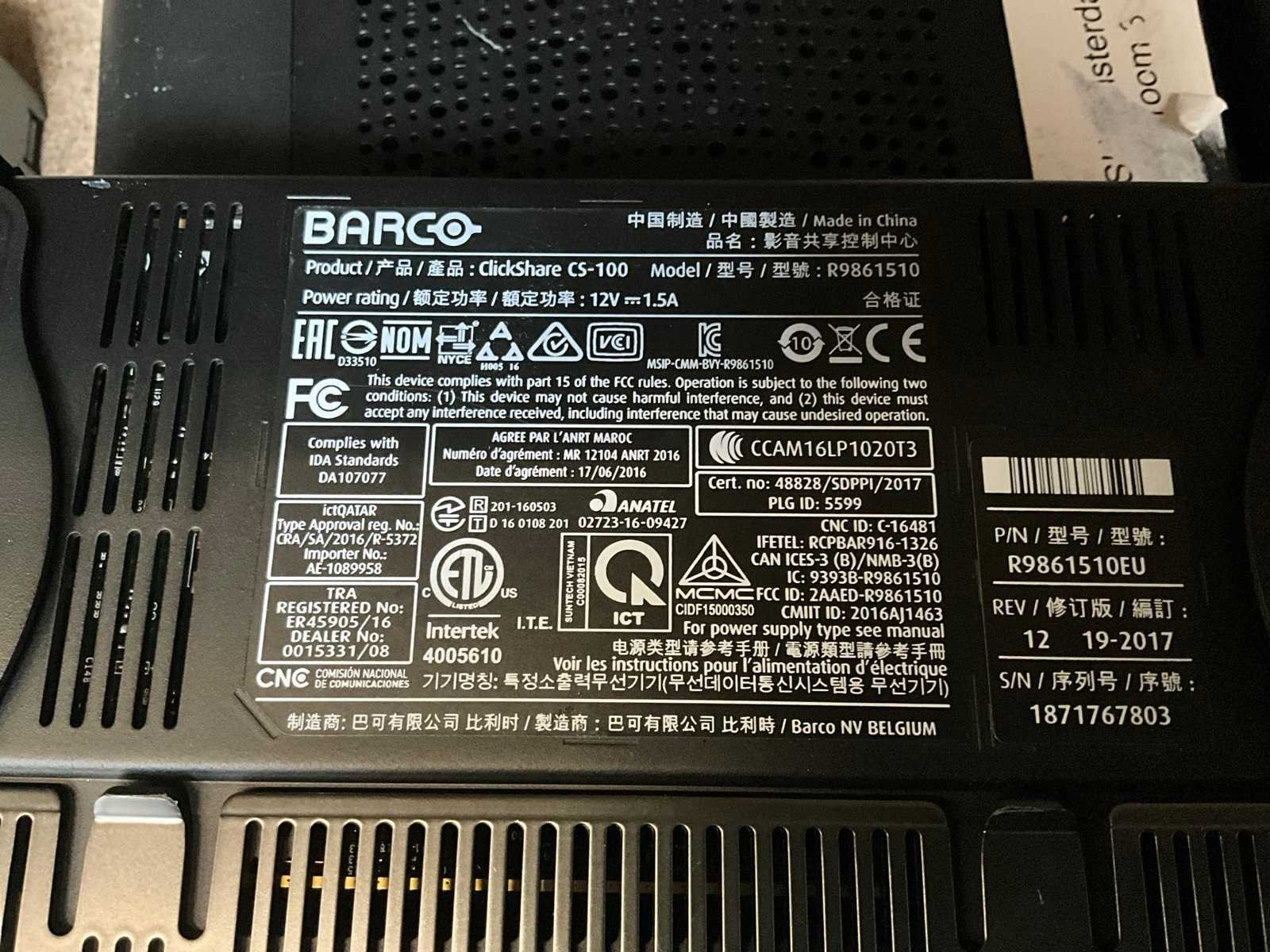 Bestaande uit onder andere: CSE-200, CS-100, CSE-200+ en R986 Merk: Barco Model: ClickShare