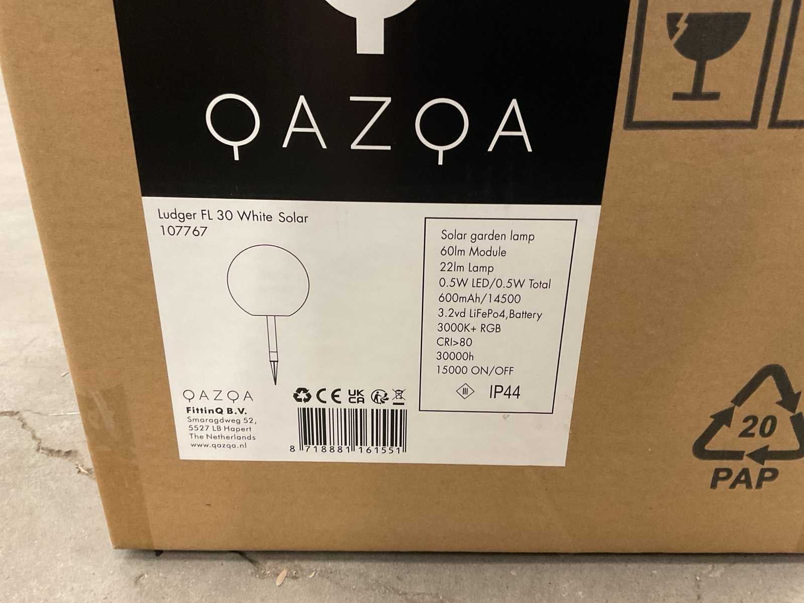 Merk: Qazqa Model: Ludger FL 30 Solar Product type: 107767 Met lichtbron: true Kleur: Wit Lengte: 30cm Breedte: 30cm