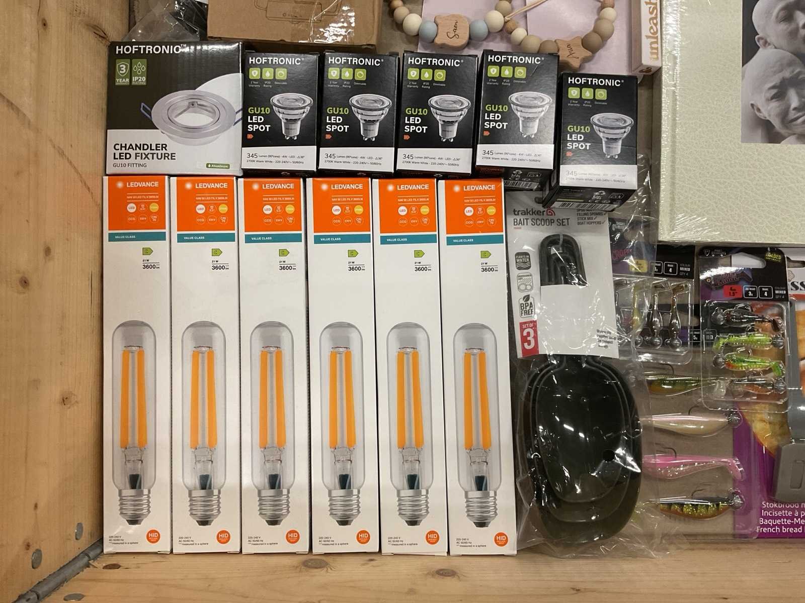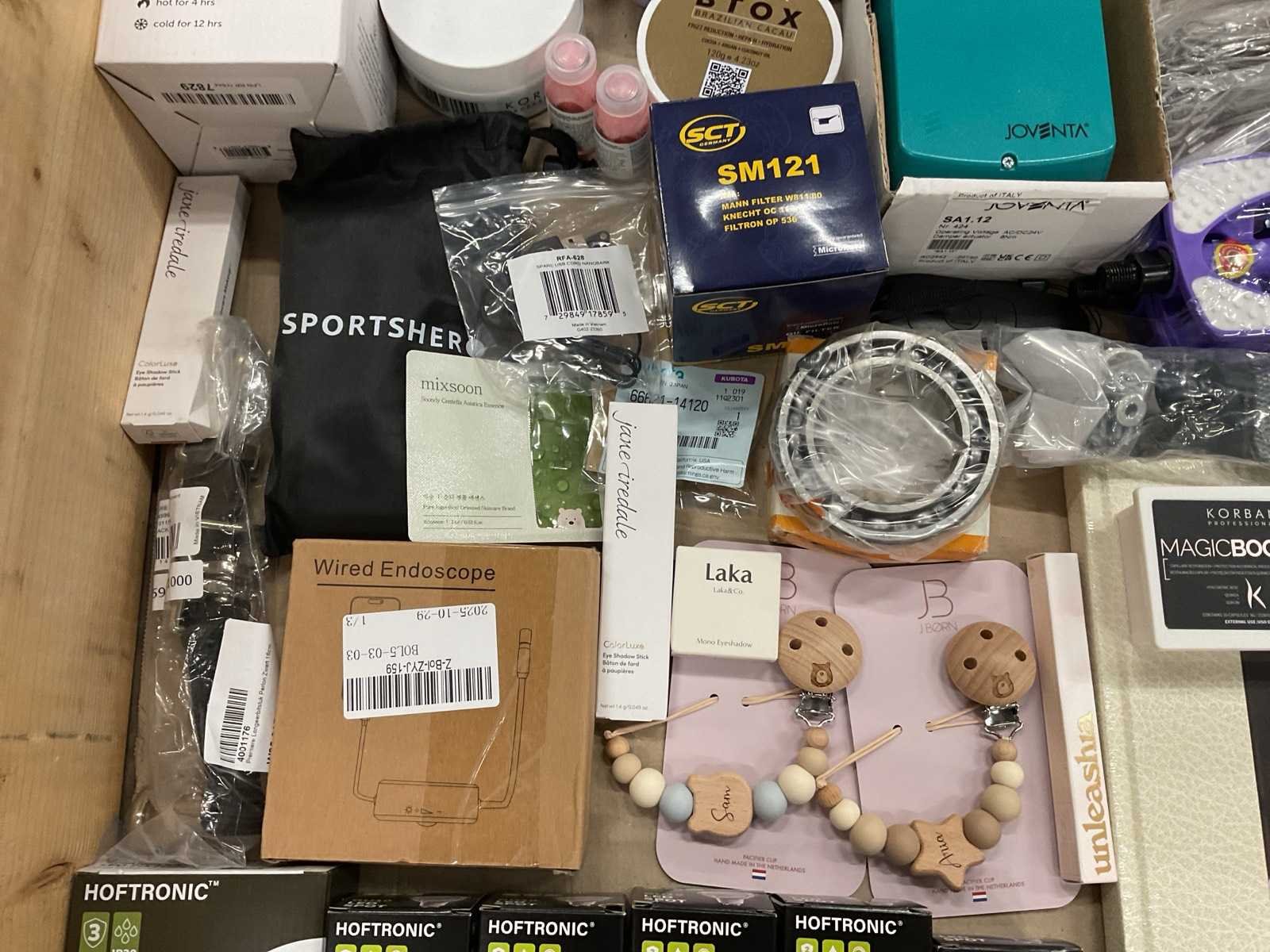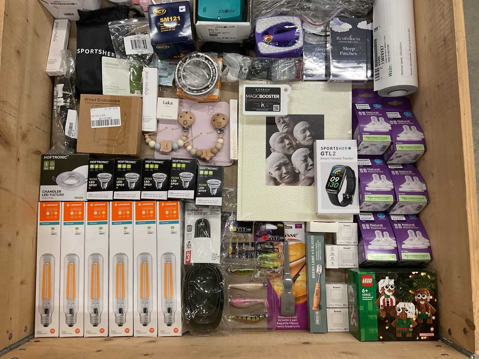 Bestaande uit: o.a. kunst aas, Lego bouwset, lichtbronnen, haarverzorging, strijkkralen, make-up, speenkoorden, vetbollen, etc.