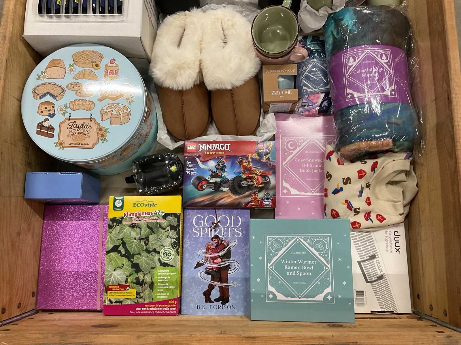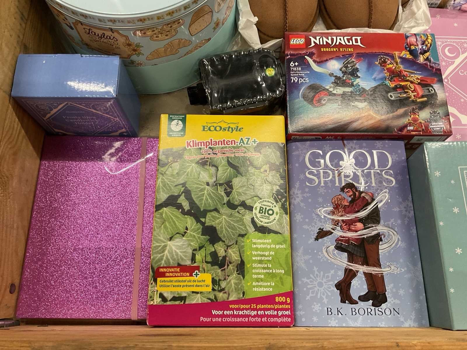 Bestaande uit: o.a. Lego bouwset, balpennen, boeken, dumbell, koffiekoppen, etc.