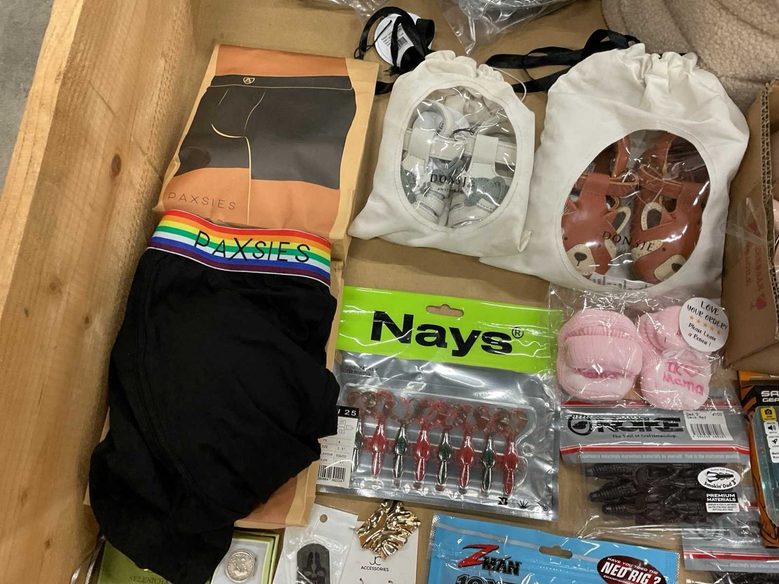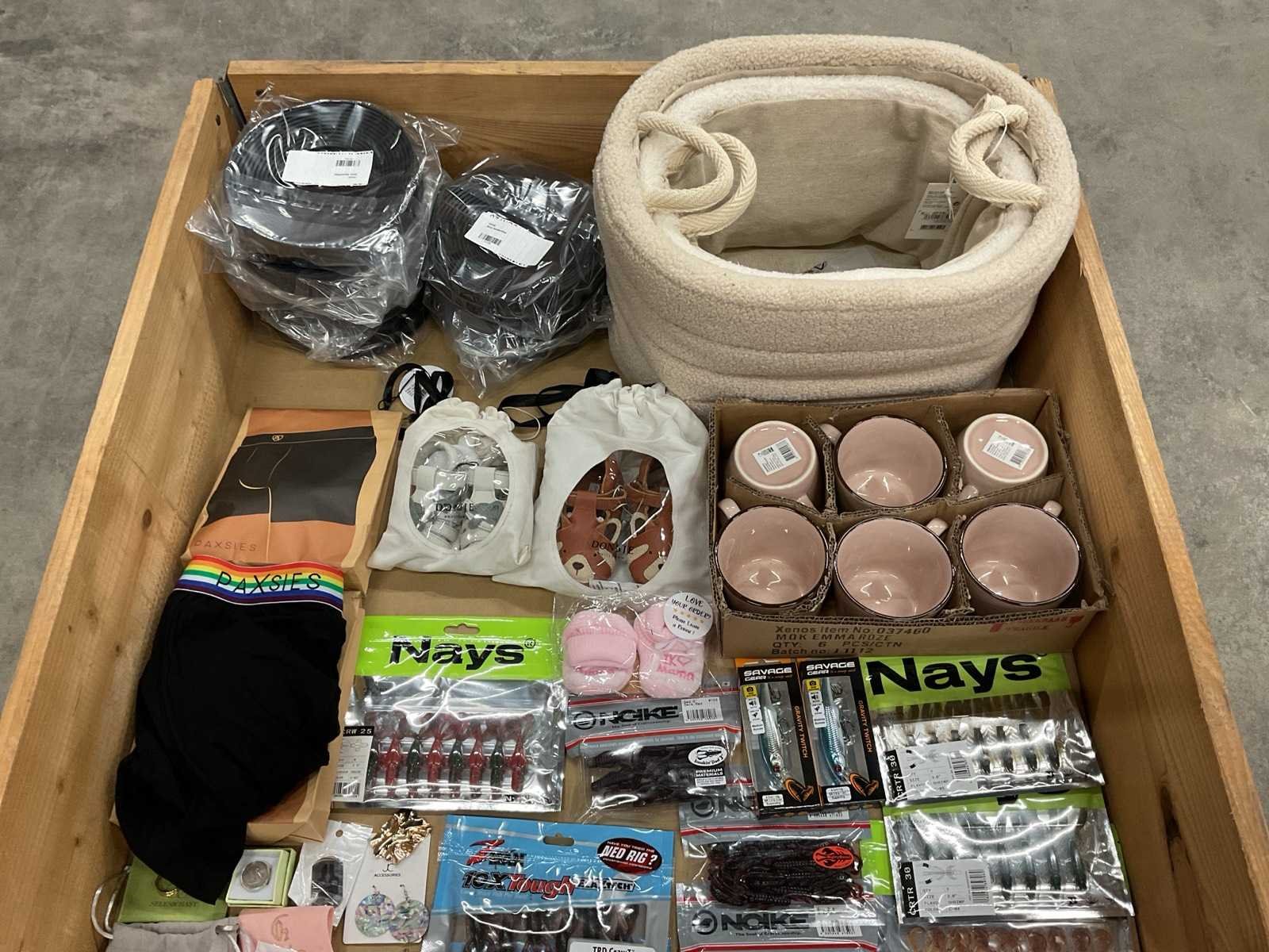 Bestaande uit: o.a. hengelsport artikelen, sieraden, damesschoenen, boxershort, opbergmanden, kinderschoenen, etc.