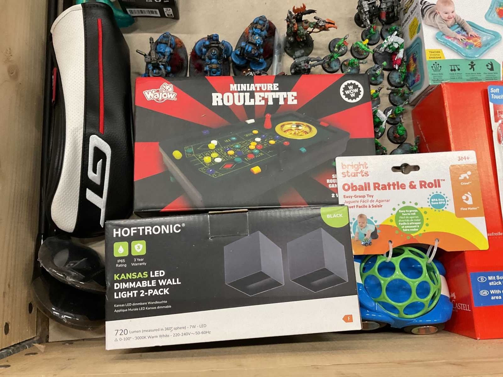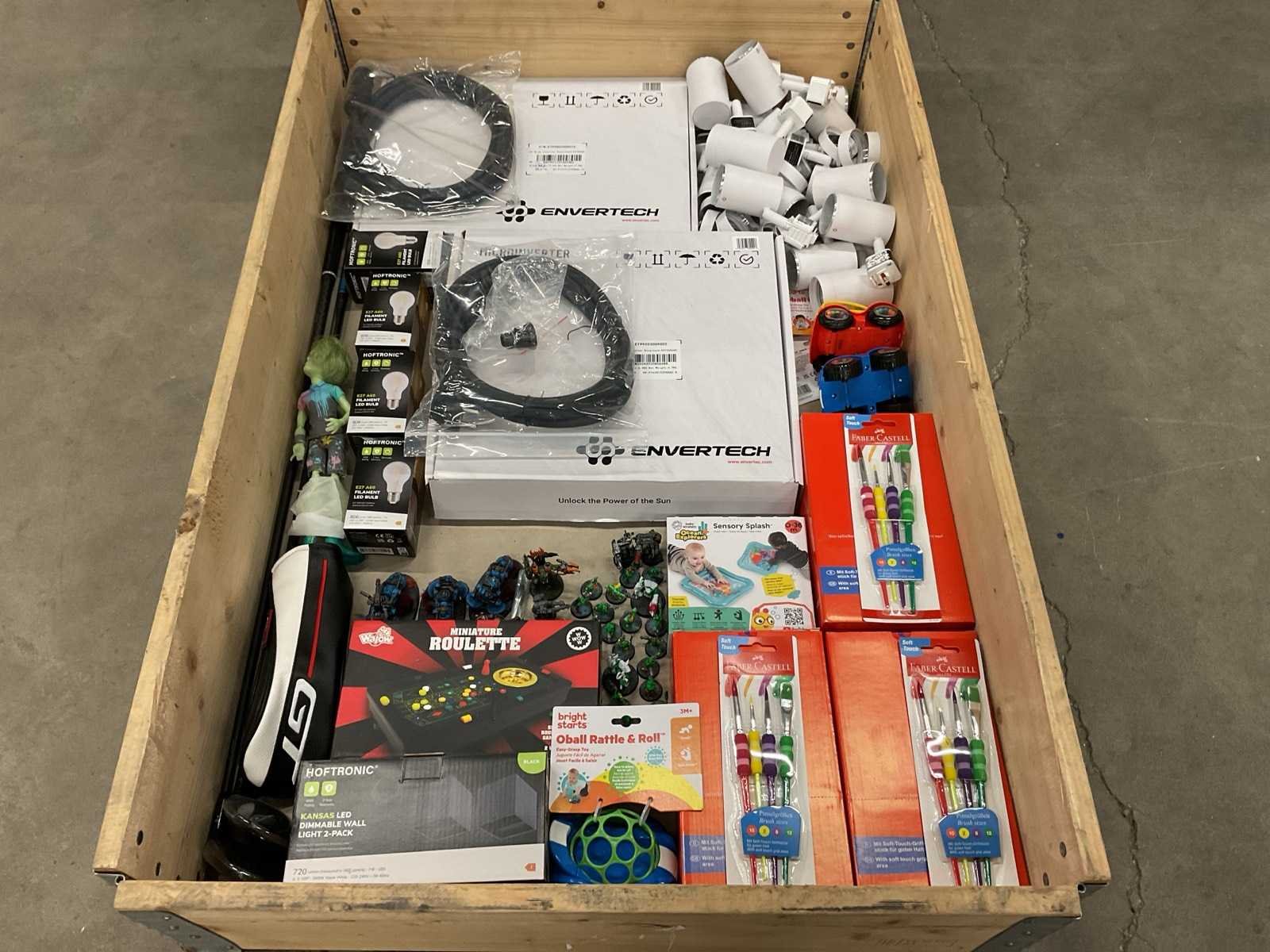 Bestaande uit: o.a. Warhammer miniaturen, micro-omvormers, penselen, golfclubs, speelgoed, etc.