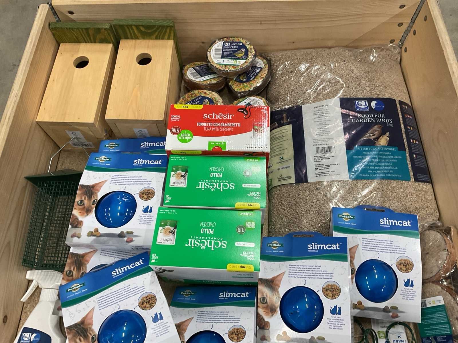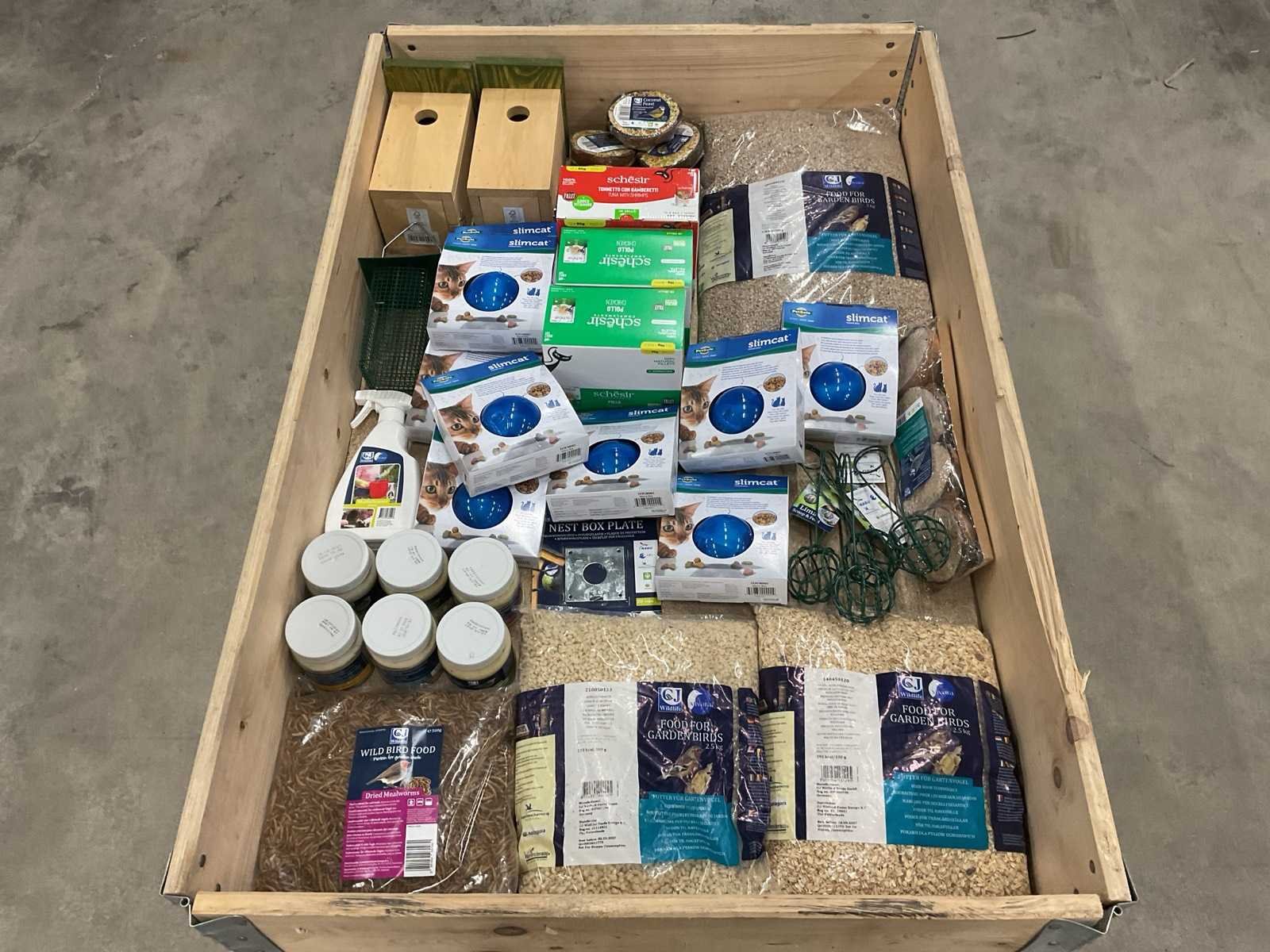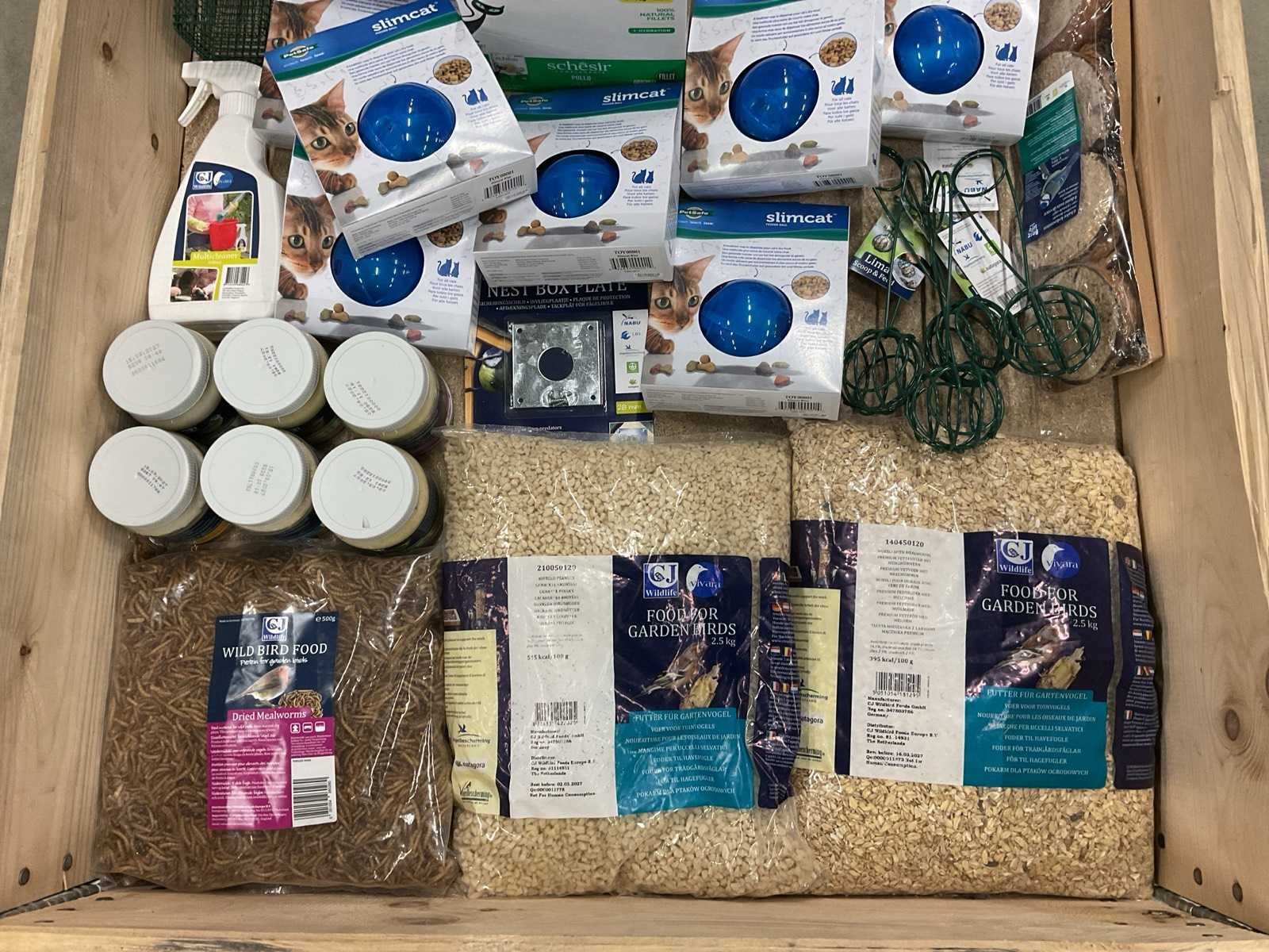 Bestaande uit: o.a. kattenvoer, katten speelgoed, vogelvoer, vogelhuisjes, etc.
