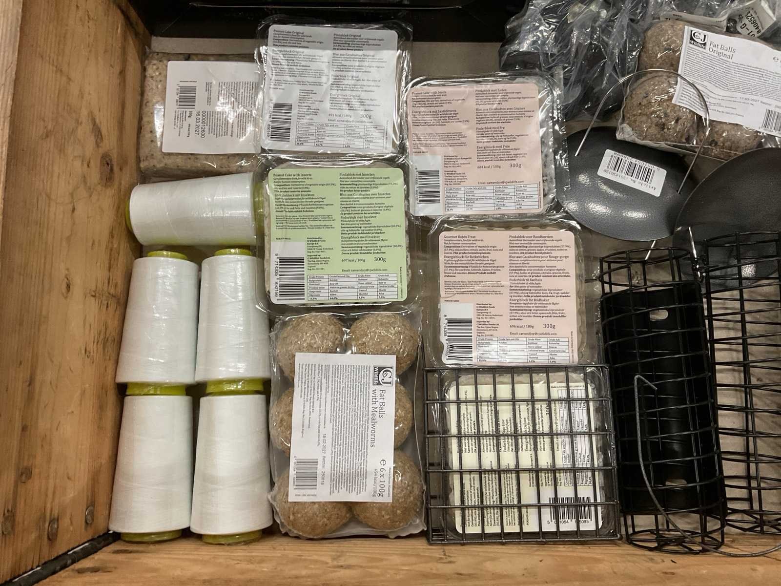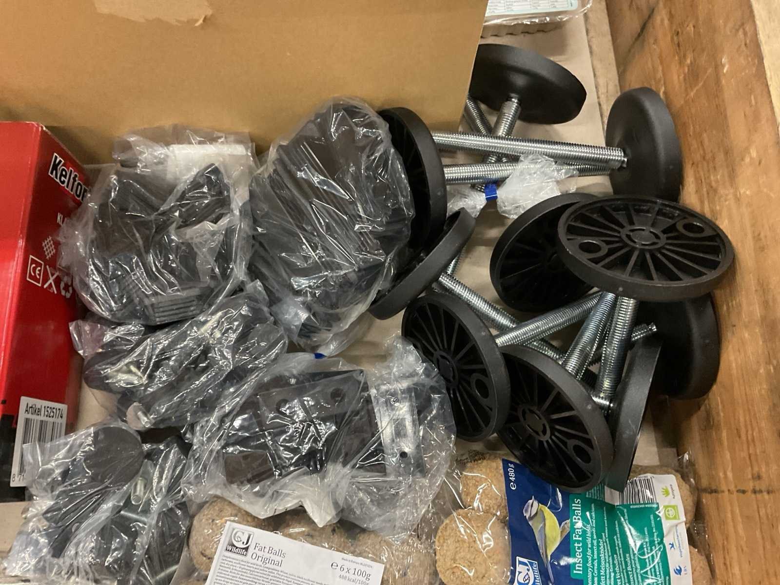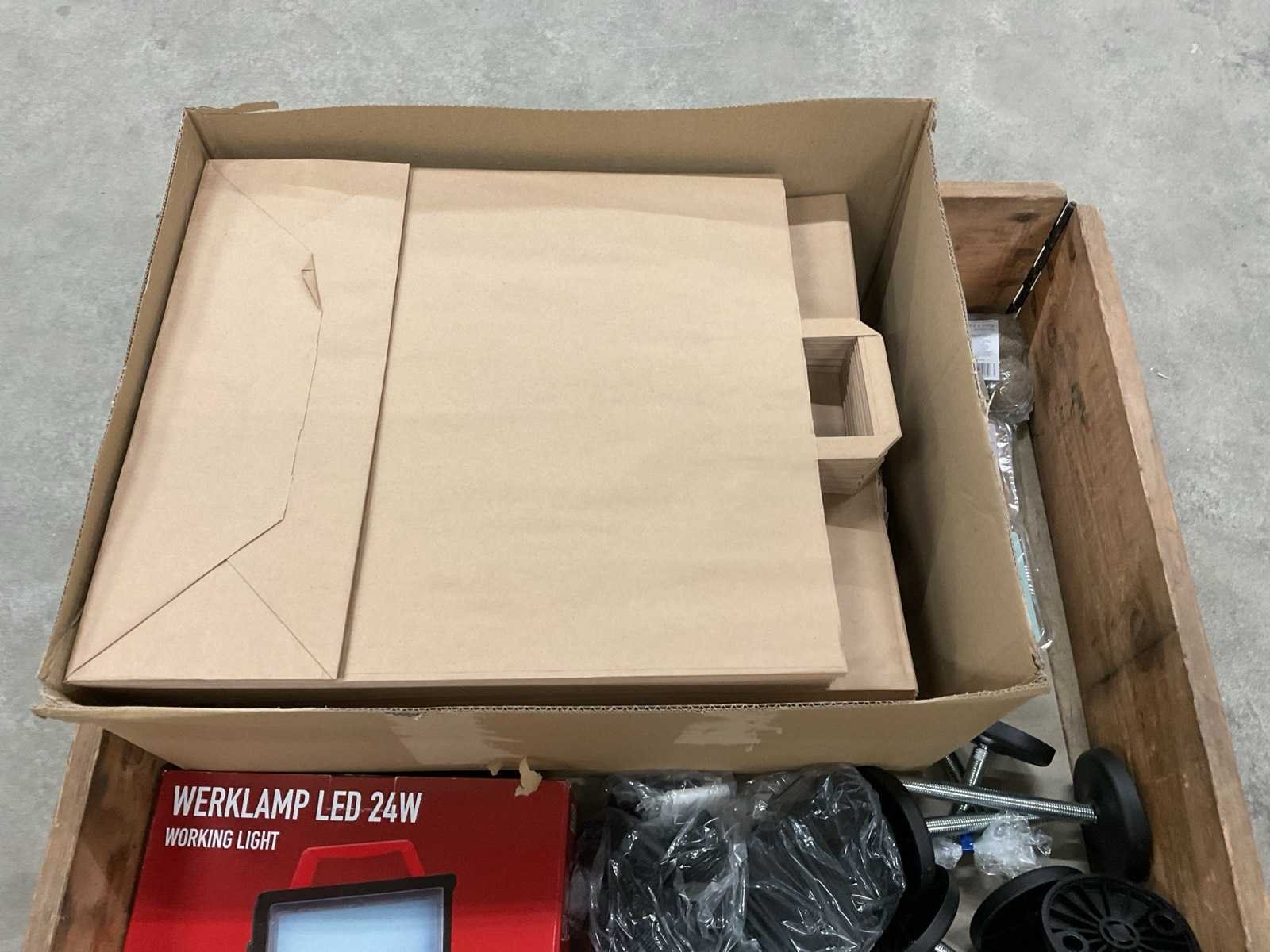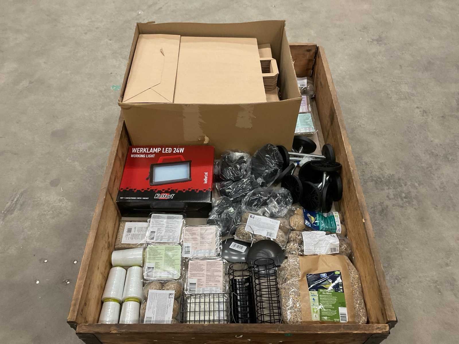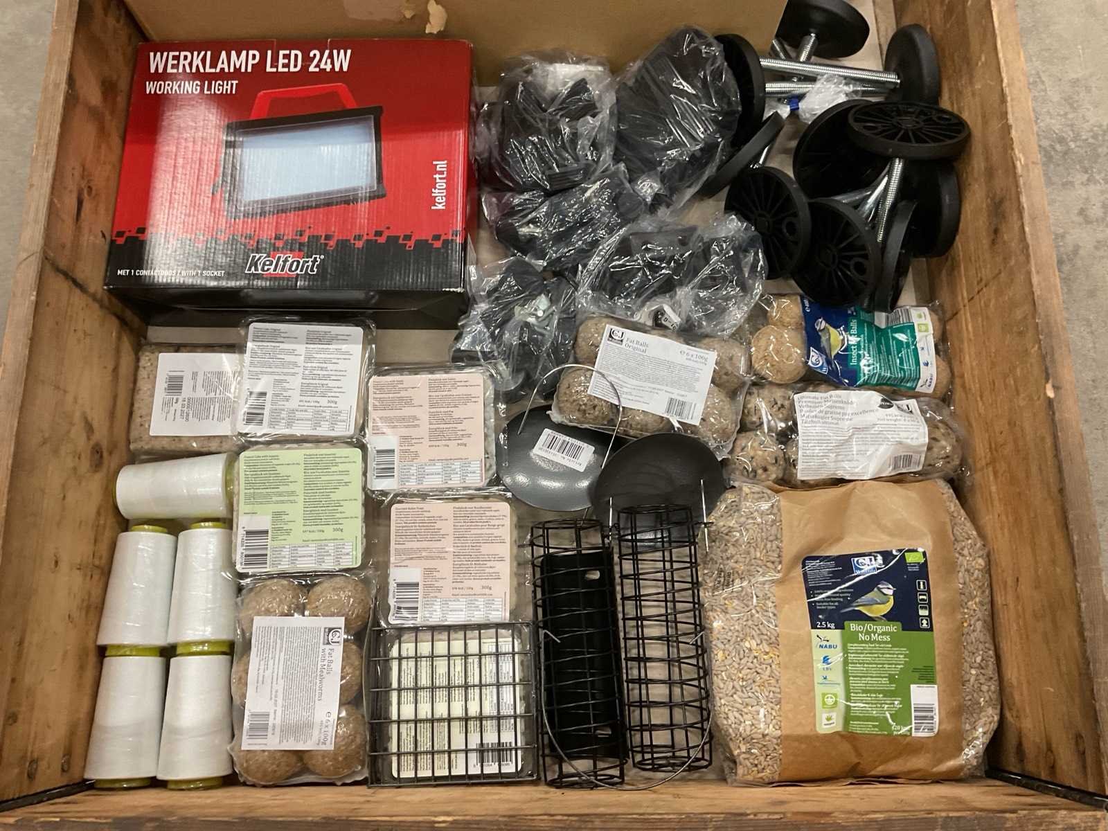 Bestaande uit: o.a. stelpoten, dempingsrubbers, werklamp, papieren draagtassen, garen, diervoeders, etc.
