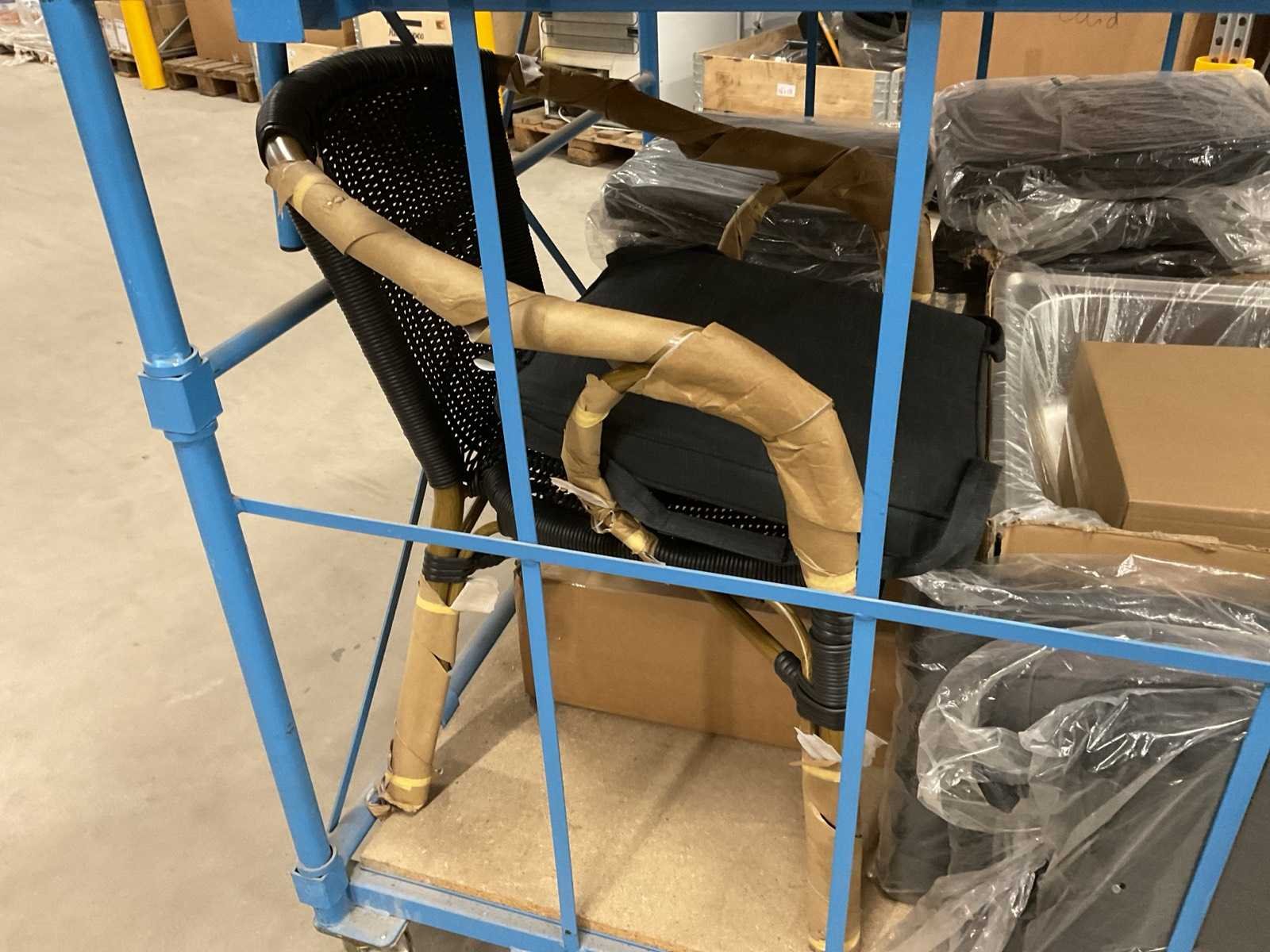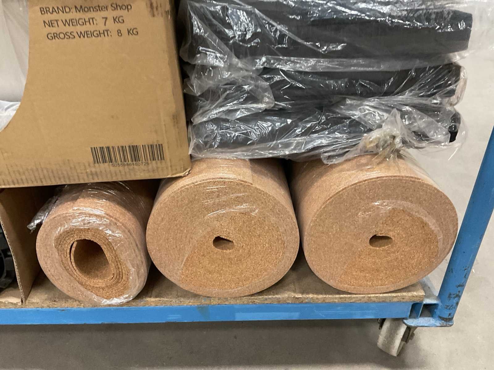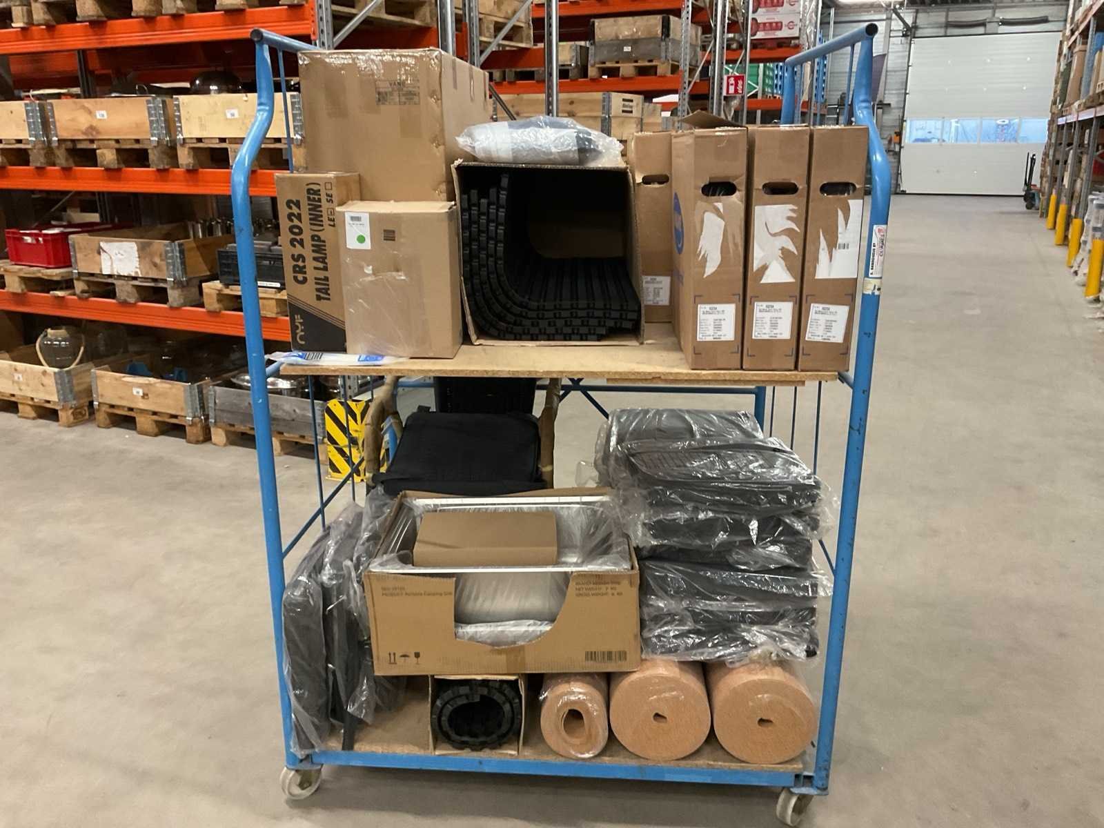 Let op! Excl. transportkar. Bestaande uit: o.a. rubberen deurmatten, rollen 4mm kurk, zitkussens, terrasstoel, RVS portable camping wasbak, bureaustoel, rolstoel zitkussens, etc.