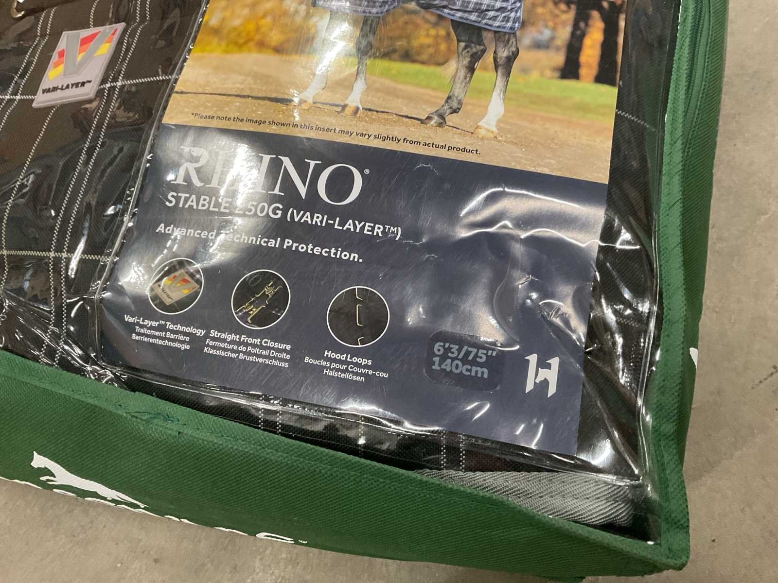 Merk: Horseware Model: Rhino Stable 250G 140cm Product type: ABBV82-KIWI-75 Kleur: Black/Grey/White Check/Grey Materiaal: Vari-Layer