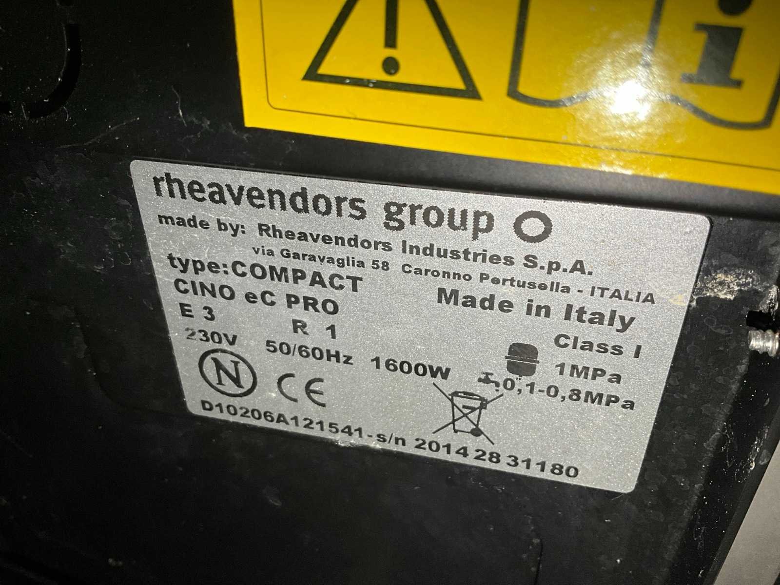10 opties Merk: Rheavendors Type: Compact Cino eC pro Aansluiting: 230V Serienummer: 20142831180 Digitale uitlezing: true Capaciteit.: 1.6kW Totale afmeting L: 600mm Totale afmeting Breedte: 320mm Totale afmeting Hoogte: 600mm