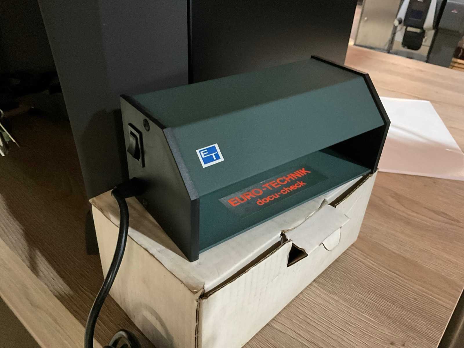 Geld/biljetten tester. Ongebruikt in doos Merk: Euro-technik Type: Docu-check Serienummer: 014428 Aansluiting: 230V