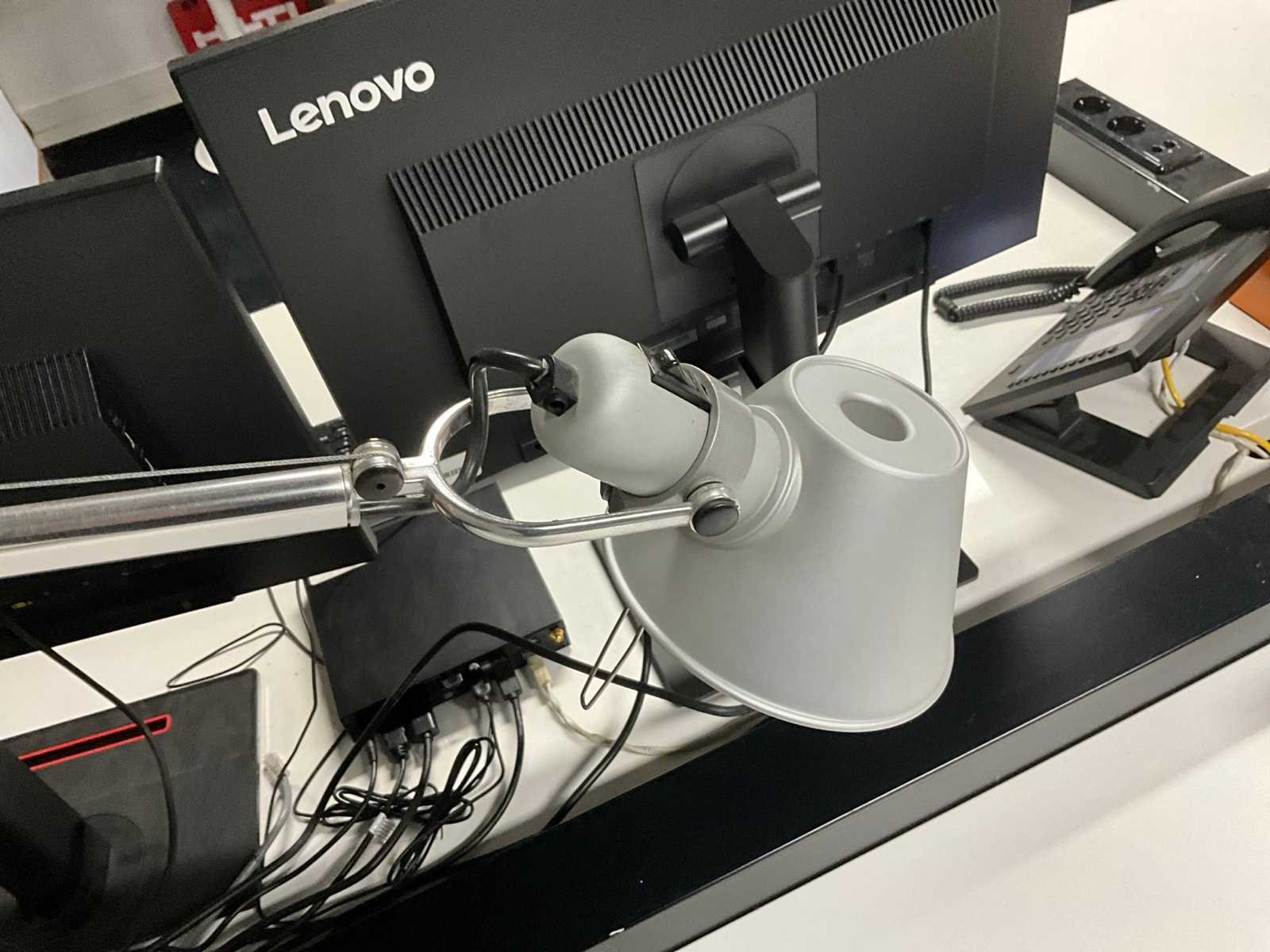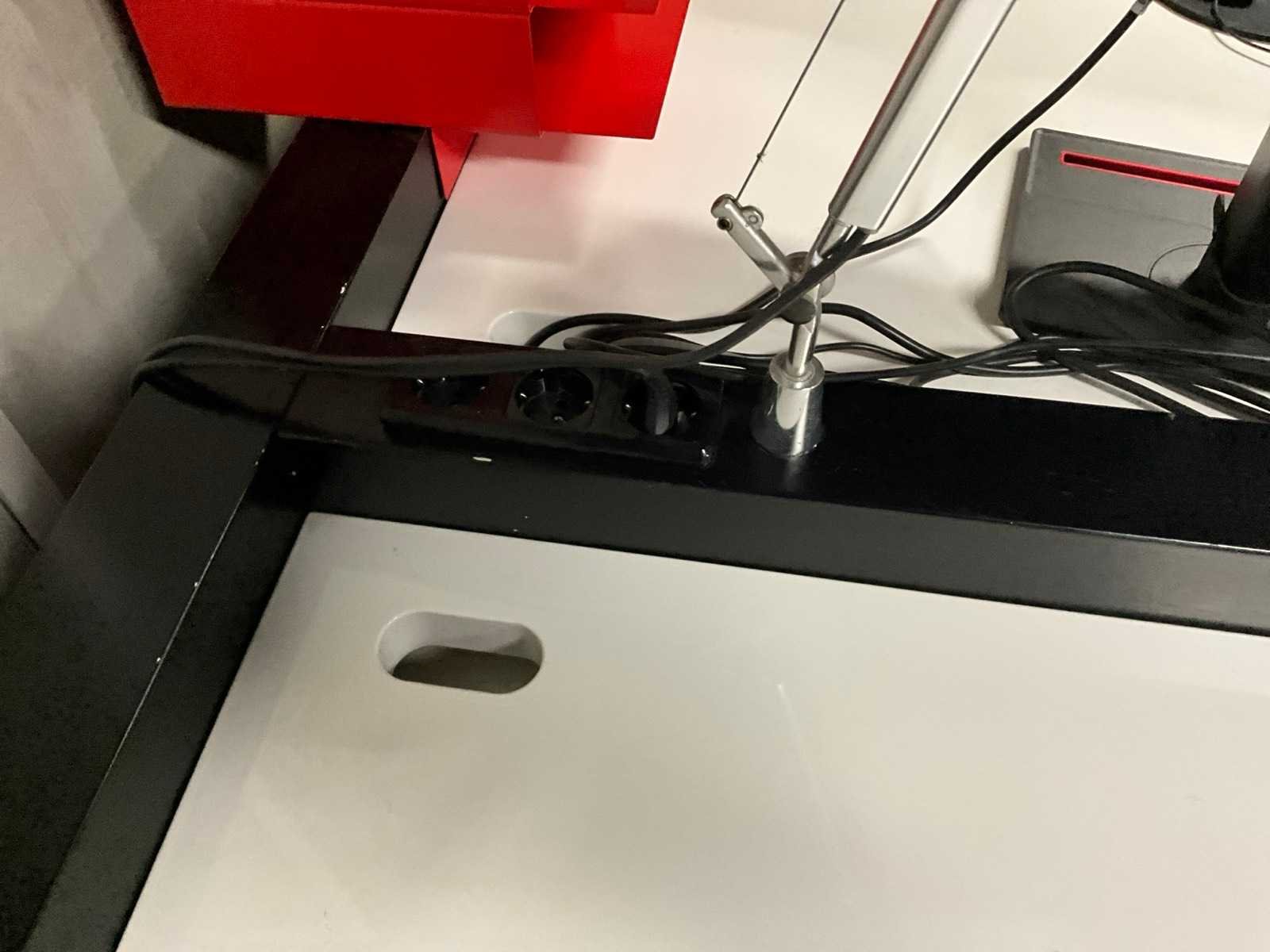 3 x tafel 180cm breed ( 1x weg klapbaar), diverse stopcontacten en internet aansluitingen ingebouwd, ingebouwde bureaulamp, zonder losse kantoor artikelen, bij opname bureau nog in gebruik