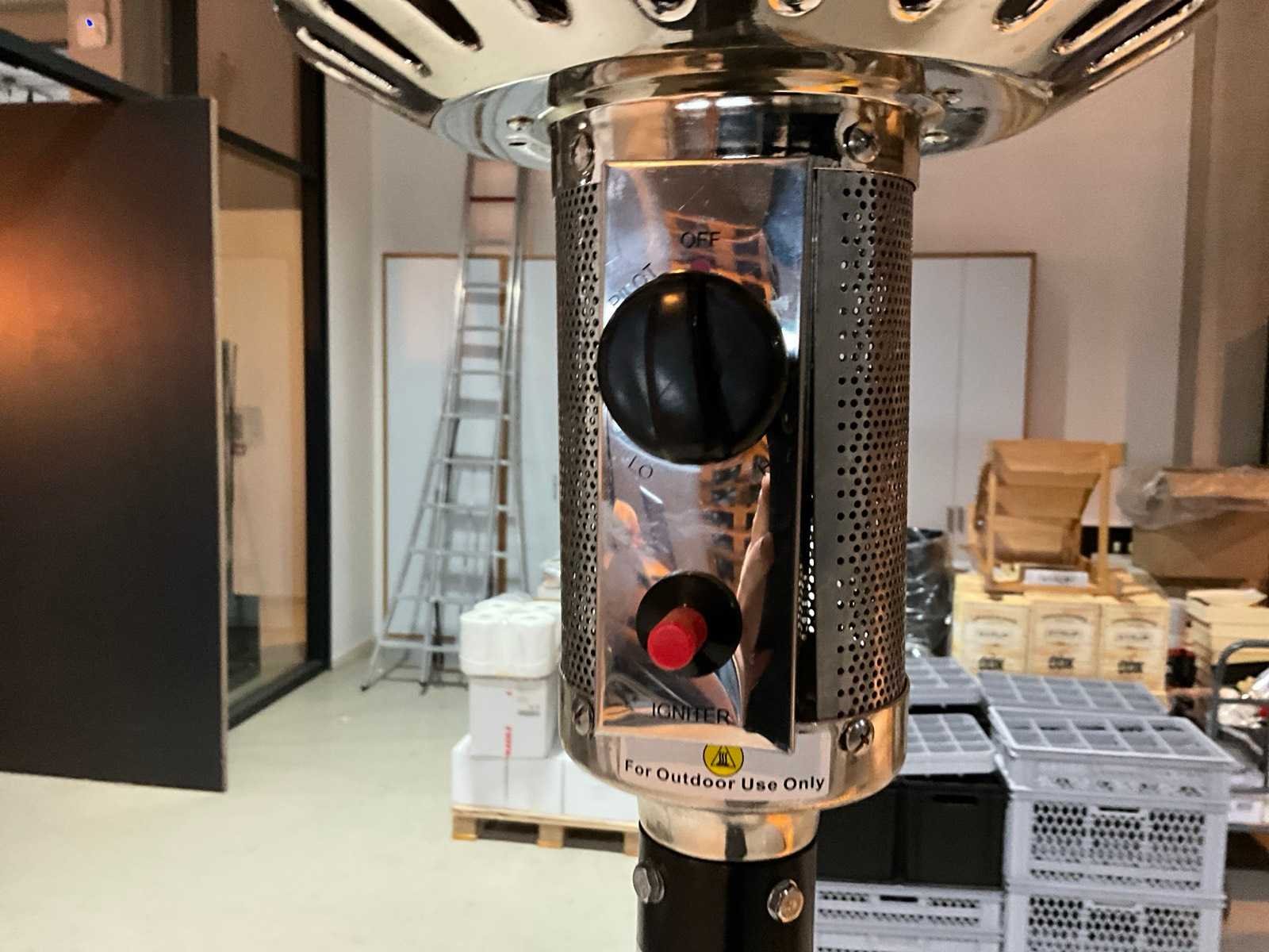 Op gas, 14kW Merk: Eurom Model: THG14000 Lengte: 80cm Breedte: 80cm Hoogte: 250cm
