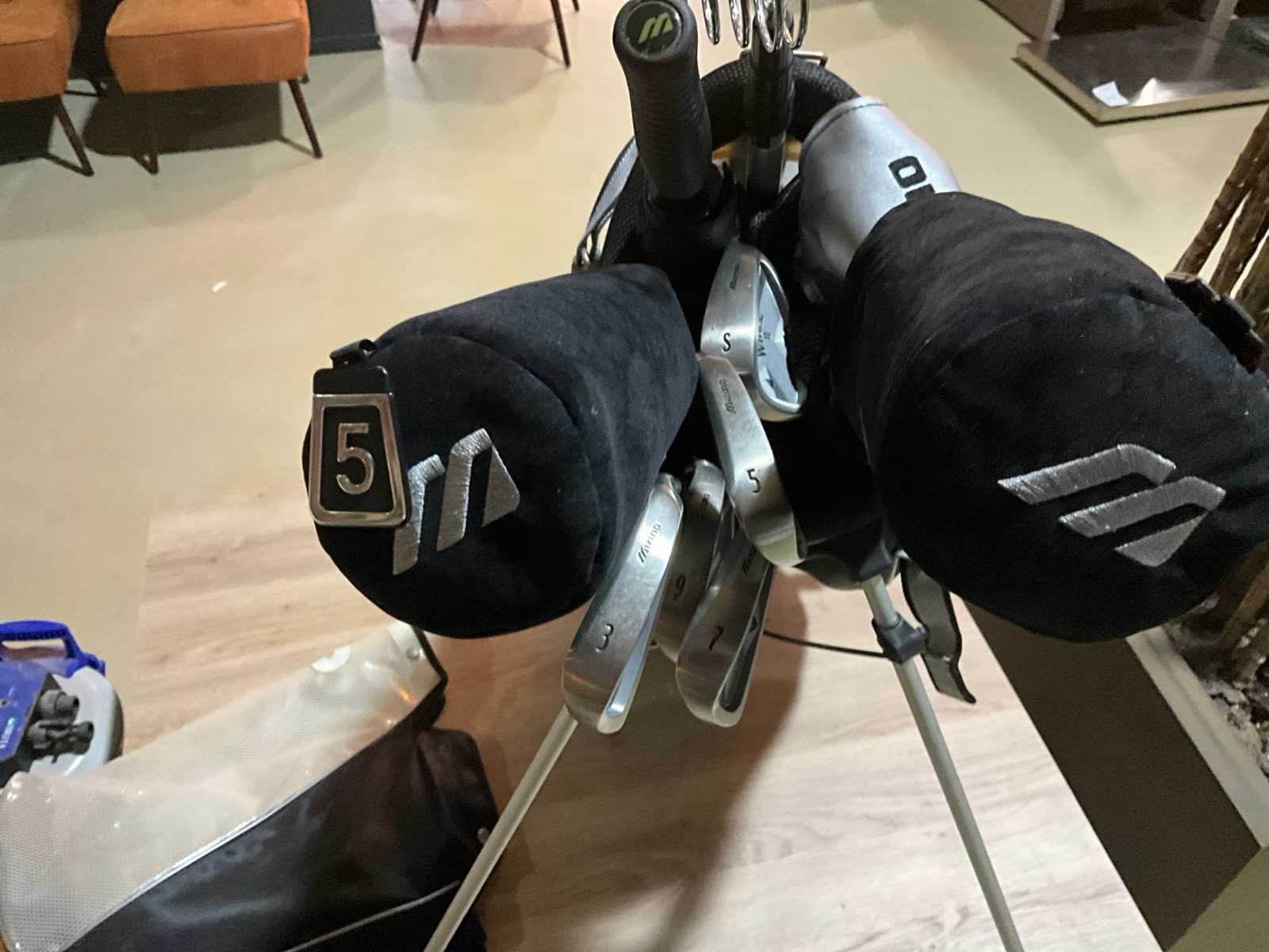 Inclusief 8 golfclubs, bal oppikker en paraplu, diverse golfballen Merk: Mizuno