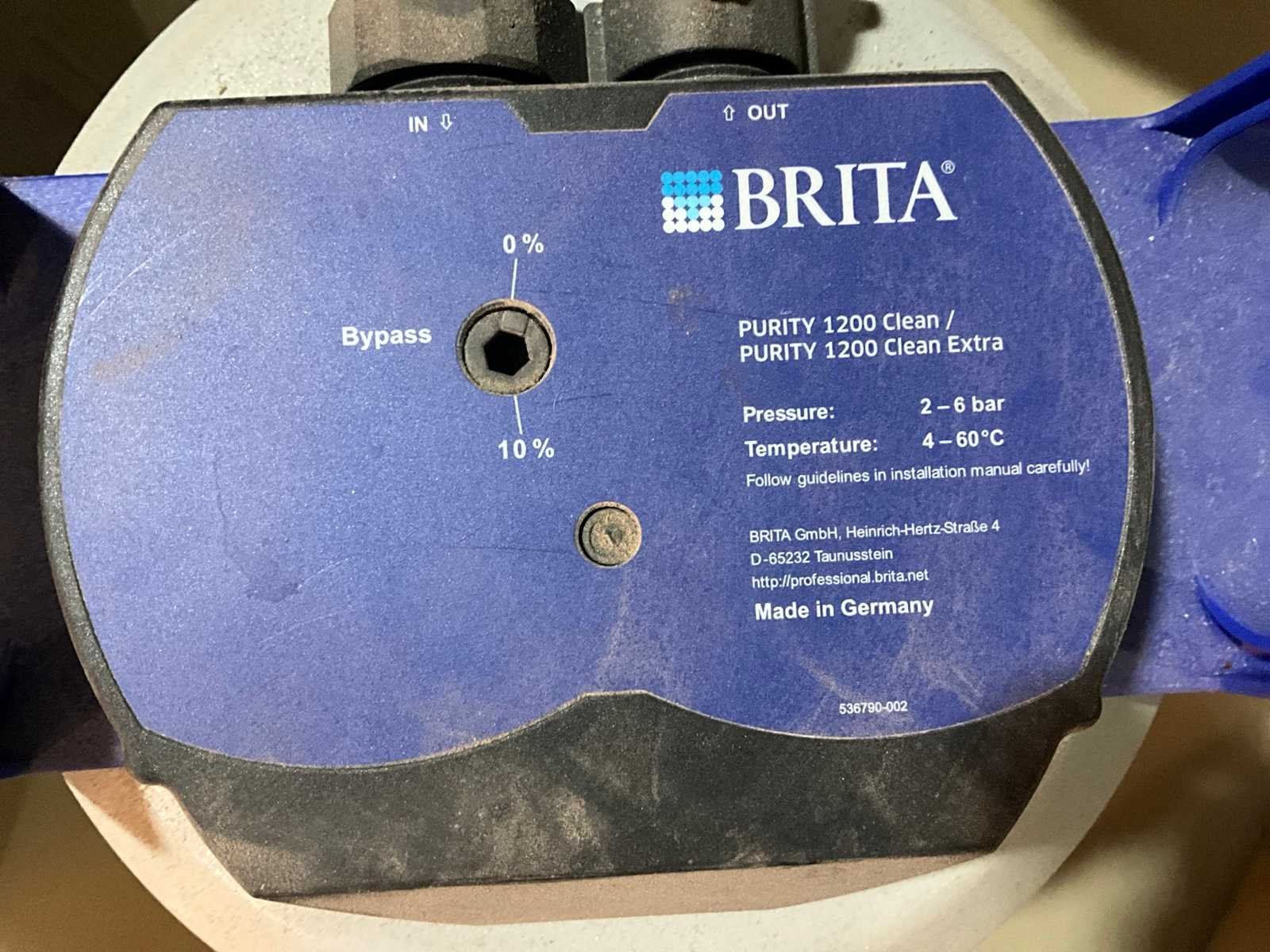 2-6 bar, 4-60 graden celcius Merk: Brita Type: Purity 1200
