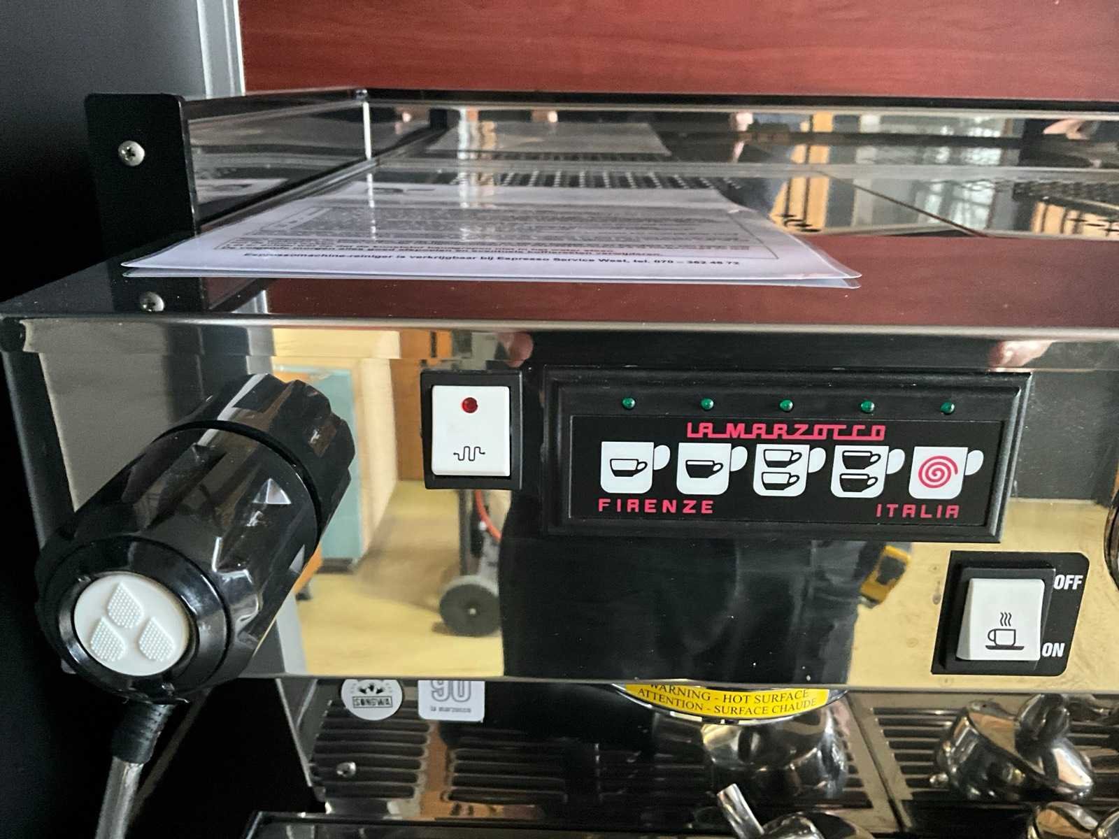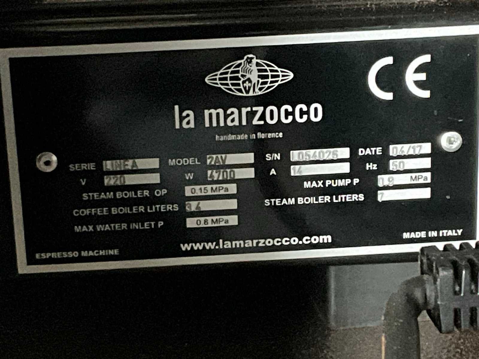 2x dubbelkops filter, 2x stoom In showroom staat, weinig gebruikt. Merk: La Marzocco Type: Linea Classic 2AV Aansluiting: 230V Serienummer: L054026 Beker/glasverwarming: true Capaciteit.: 4.7kW Totale afmeting L: 600mm Totale afmeting Breedte: 700mm Totale afmeting Hoogte: 450mm