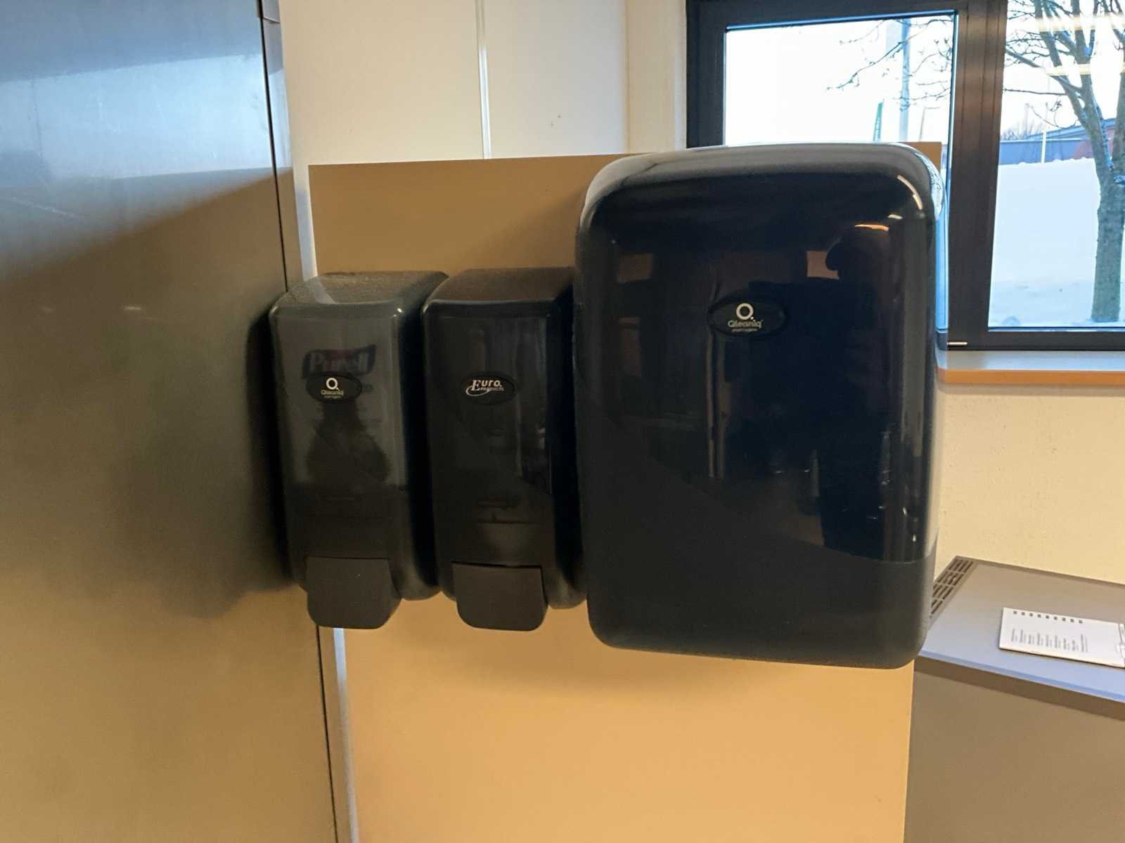 4 planken, 2x zeep- en desinfecteer dispenser en papier dispenser Lengte: 500mm Breedte: 1200mm Hoogte: 175mm