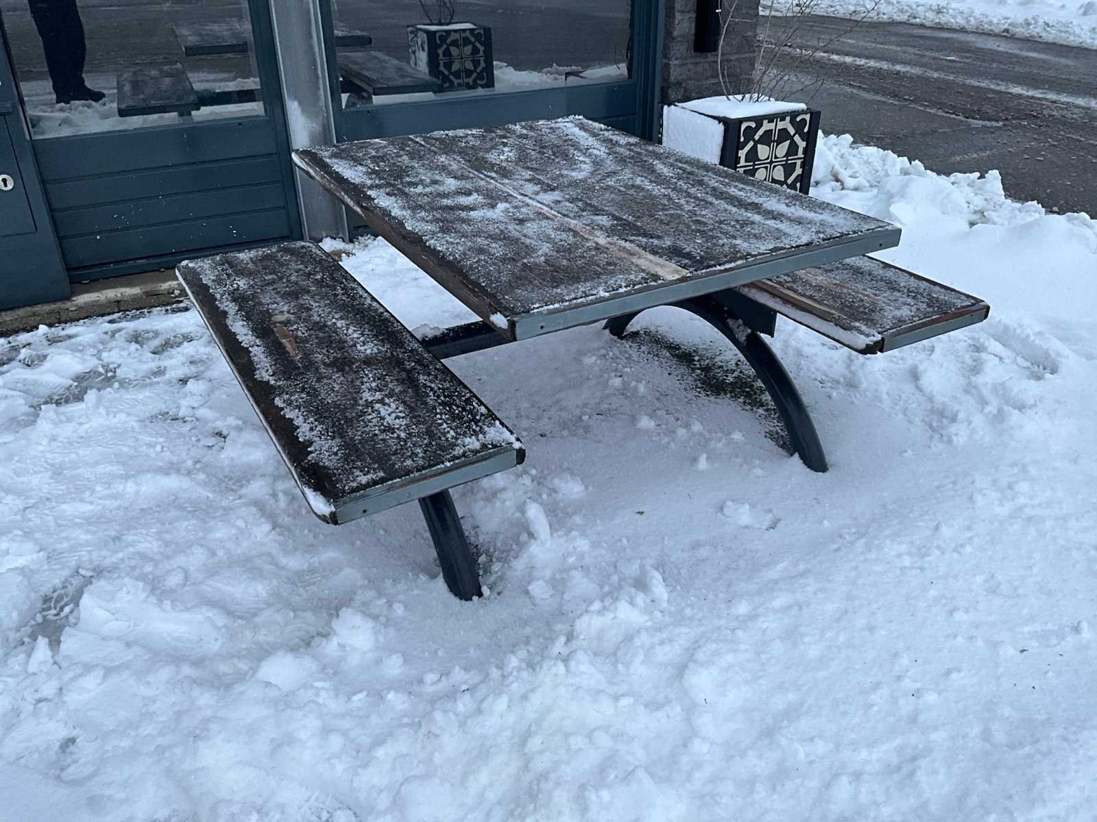 Terras tafel met zitbanken