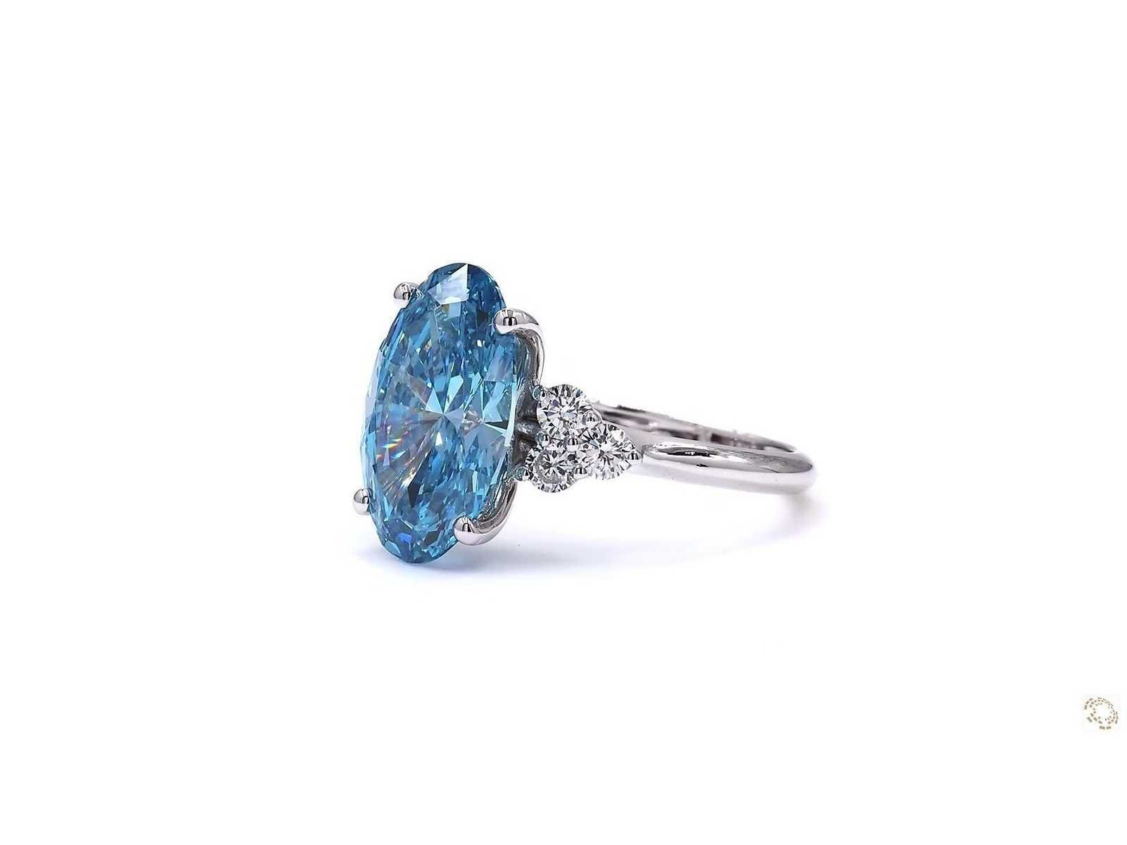 Exclusieve 18K witte goudring Ringmaat - 54 EU / 14 IT / 6,75 US Rapportnummer IGI: LG689506800 Vorm: Ovaal met heldere snede Karaatgewicht van de hoofdsteen: 5,21. Kleur: Fancy Vivid Bleu Helderheid: VS1 Symmetrie: uitstekend Omringende stenen - 0,62 karaat (8 stuks) Total Carat - 5.83 Totaal gewicht van de ring: 4,226 gram Bezichtiging op afspraak Materiaal: Witgoud Ringmaat : 54 Certificaat: Ja Lage schatting: 13900€