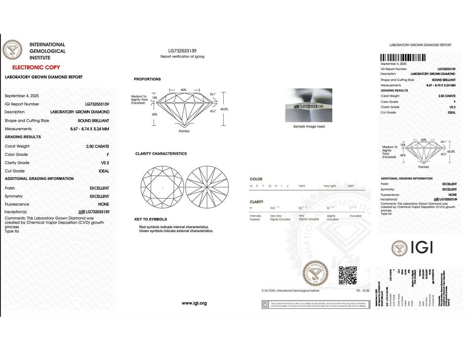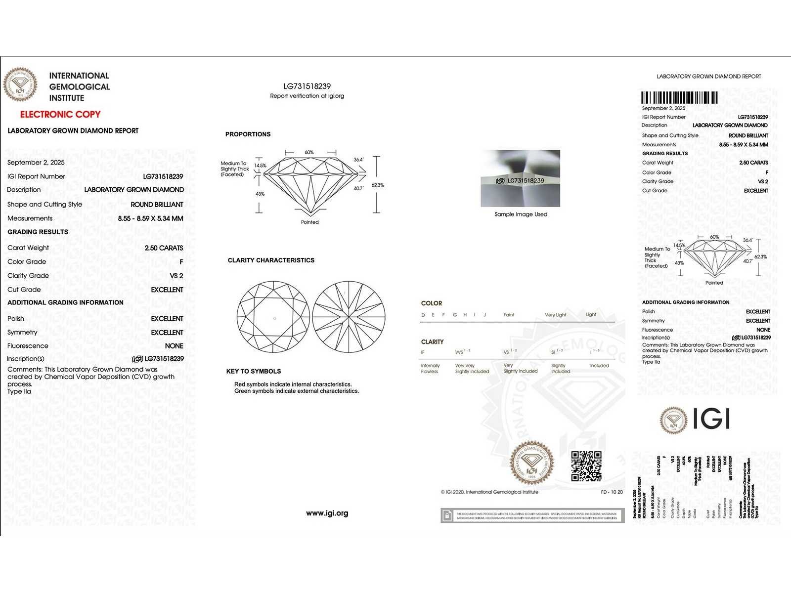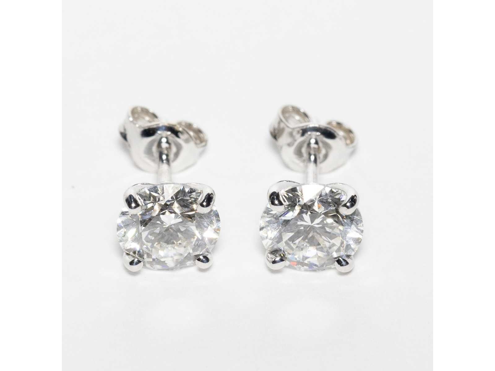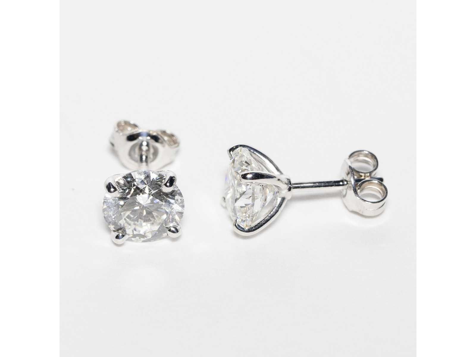 Laboratoriumrapport IGI: LG731518239 Oorstekers 18 karaat witgoud Crt.: 2,50/2,50 Kleur: F/F Snede: uitstekend Symmetrie: uitstekend Fluorescentie: geen Helderheid: VS2/VS2 Bezichtiging op afspraak Materiaal: Witgoud Certificaat: Ja Lage schatting: 7100€