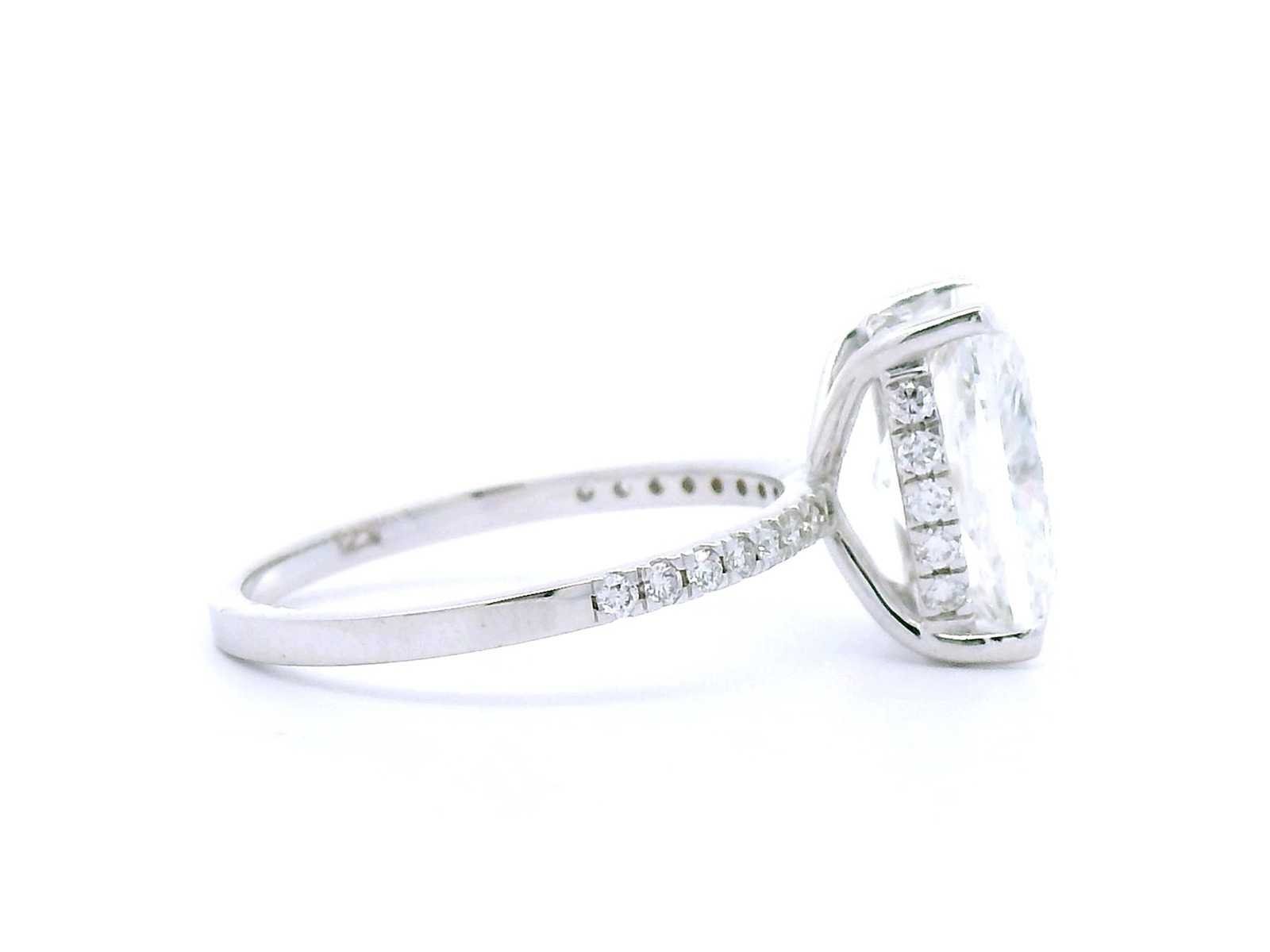 Exclusieve 18K witgouden ring Rapportnummer IGI: LG729595532 Total Carat - 4.32 Vorm: Ovaal Brilliant Gewicht van de hoofdsteen: 4,02 CT Kleur: E Helderheid: VS1 Snede: uitstekend Symmetrie: uitstekend Omringende steen - 0,30 karaat (32 stuks) Totaal karaatgewicht - 4,32 karaat Bezichtiging op afspraak Materiaal: Witgoud Ringmaat : 54 Certificaat: Ja Lage schatting: 7900€