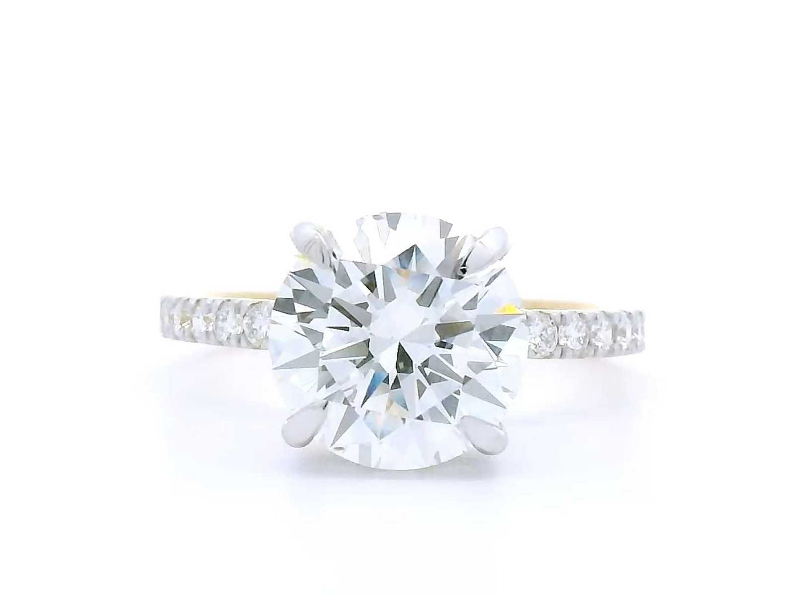 Rapportnummer IGI: LG729521560 Vorm: Rond schitterend Gewicht van de hoofsteen: 3,01 CT Kleur: E Helderheid: VS1 Snede: uitstekend Symmetrie: uitstekend Omringende Steen - 0,54 Carat (28 stuks) Totaal carat gewicht - 3,55 carat Totale ringgewicht: 3,30 gram 18K Geelgoud Ringmaat - 54 EU / 14 IT / 6,75 US Bezichtiging op afspraak Materiaal: Geelgoud Ringmaat : 54 Certificaat: Ja Lage schatting: 6400€