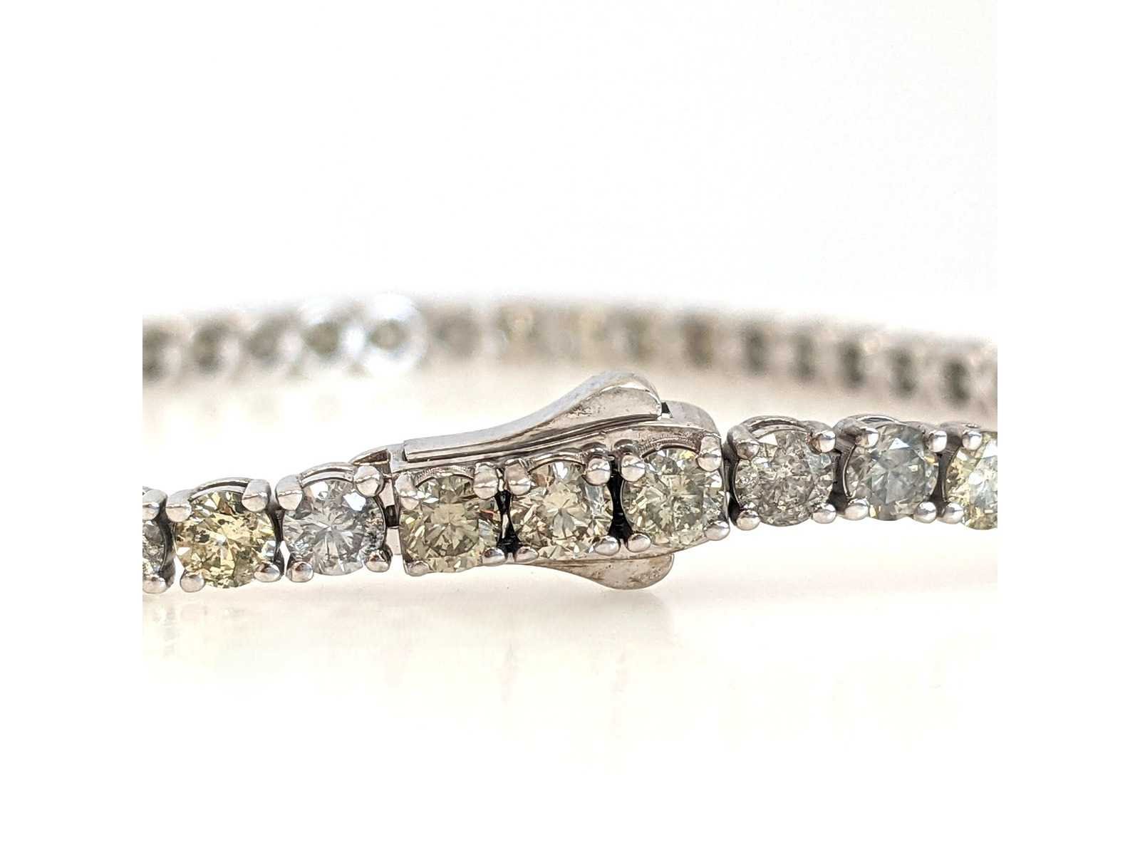 Natural Diamonds Geslepen: Rond Brilliant Carat: 6,15 cttw / 55 stenen Kleur: Natuurlijk gekleurd Helderheid: SI - I1 Grootte: 18 cm Bezichtiging op afspraak Materiaal: Witgoud Maten: 18 cm. Certificaat: Ja Lage schatting: 8100€