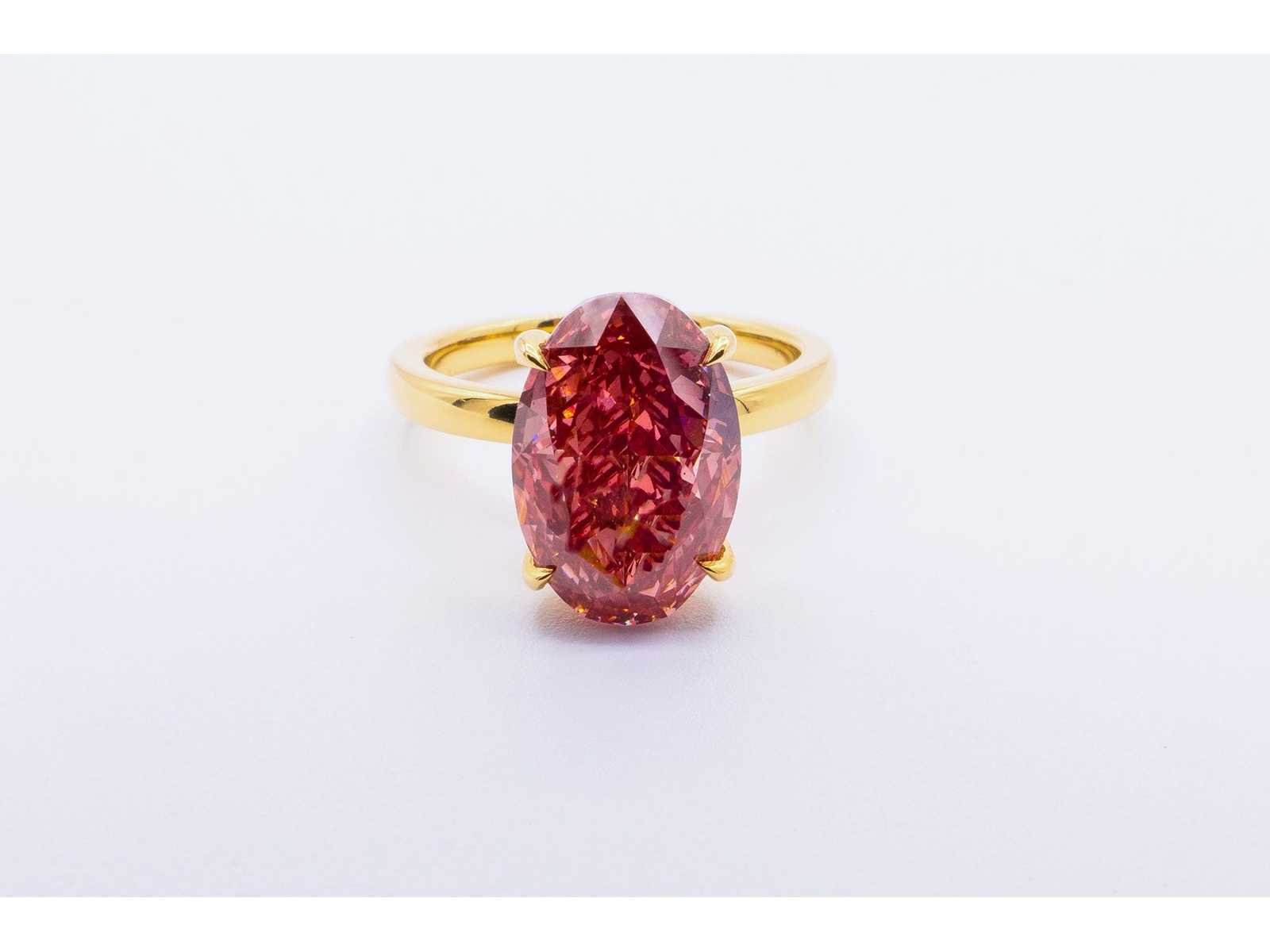 IGI Lab Report: LG704546522 Diamantvorm: Ovaal brilliant Caraat: 4,60 Kleur: Fancy vivid pink Helderheid: VS2 Symmetrie: Uitstekend Flourescentie: Uitstekend Totaal gewicht: 4,46 gram Bezichtiging op afspraak Materiaal: Geelgoud Ringmaat : 53 Certificaat: Ja Lage schatting: 11000€