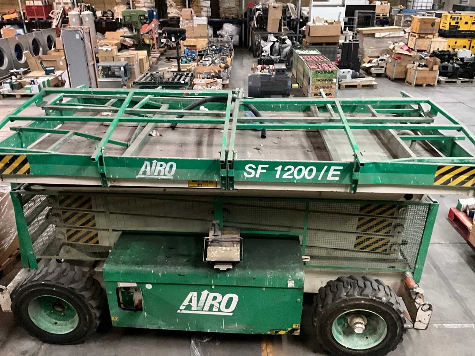 Werking onbekend. Merk: Airo Type: SF 1200/E Elektrisch: true Plateau afm. l: 3400mm Plateau afm. b: 1700mm Platform capaciteit: 500kg Eigen gewicht: 4750kg Totale afmeting L: 3400mm Totale afmeting Breedte: 1700mm Totale afmeting Hoogte: 2000mm