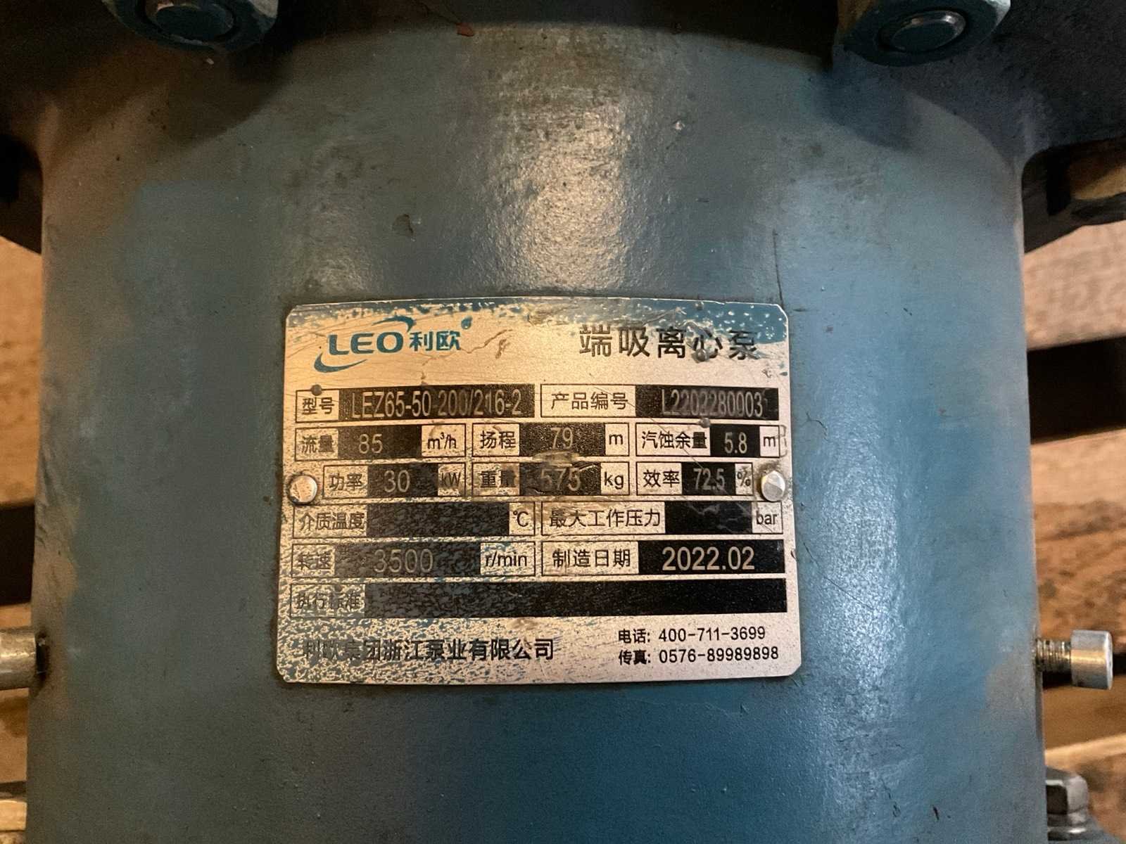 1x LEO type LEZ65-50-200/216-2, aandrijving: Echtop type T3CR-IE3 200 L1-2 elektromotor, 30kW, Qmax 85m2/h, H 79m, aansluiting: 65/50mm, 1x Pomp met aandrijving: ATB type 3-MOT CAF 112M/2F-115+E3, 4kW, aansluiting: 40mm. Aansluiting: 400V Eigen gewicht: 472kg Totale afmeting L: 1000mm Totale afmeting Breedte: 700mm Totale afmeting Hoogte: 700mm