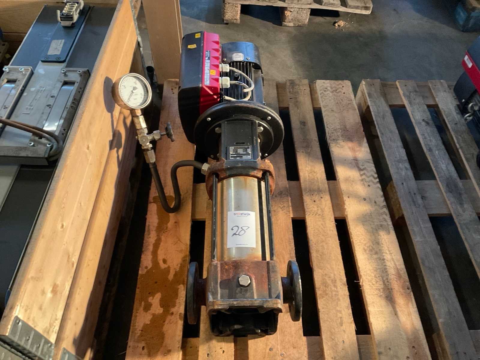 Merk: Grundfos Type: MGE132SE 2-FF265-JA Vermogen: 5.5kW Capaciteit.: 12100l/hr H-max.: 124m Aansluiting: 400V Eigen gewicht: 38kg Totale afmeting L: 350mm Totale afmeting Breedte: 300mm Totale afmeting Hoogte: 1000mm