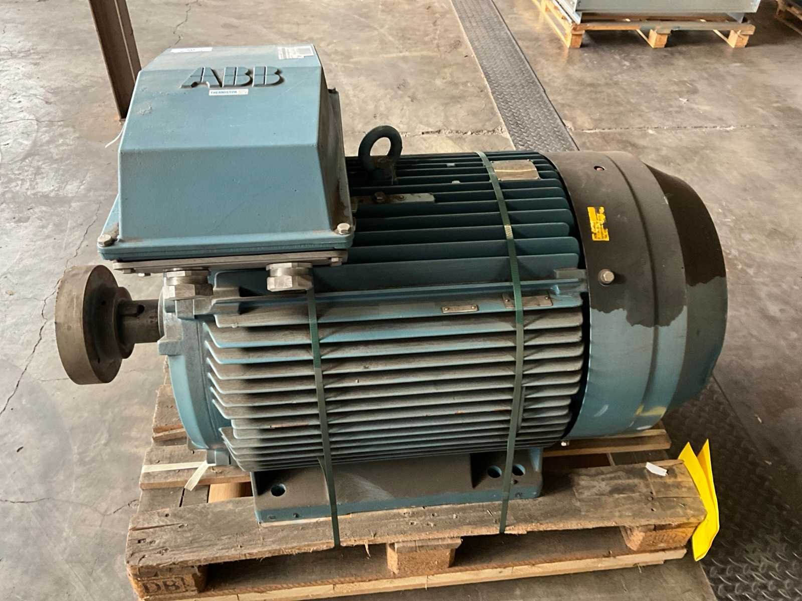 As Ø circa 90 mm, gewicht circa 1100 kg Merk: ABB Product type: M28A 315MLA 8 ExnA II T3 83 Aansluiting: 690V Vermogen: 110kW Lengte: 130cm Breedte: 70cm Hoogte: 86cm