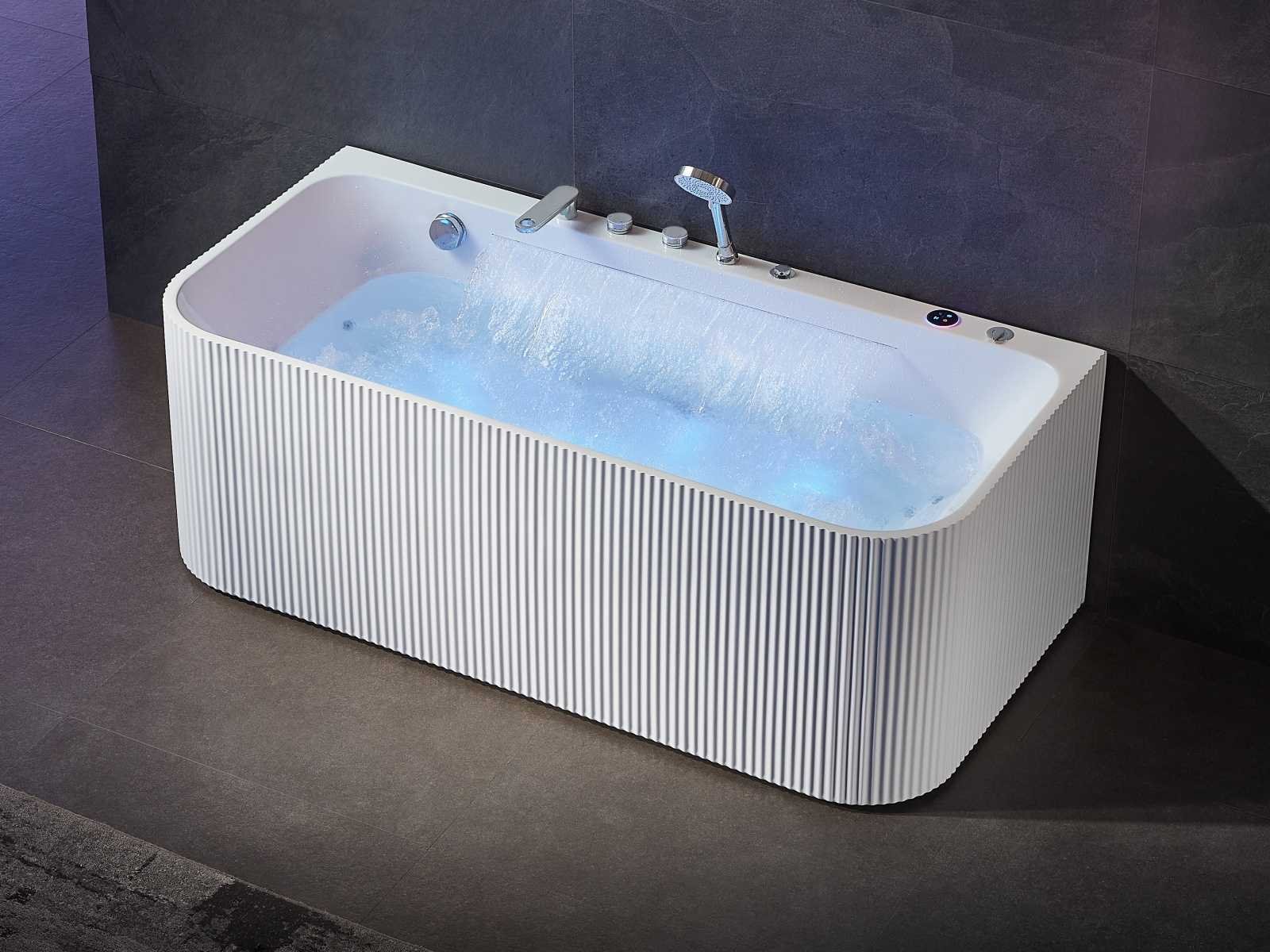 Bleutooth met speakers; digitaal bedieningspaneel; De badkranen op de rand van het bad zijn gemaakt van verchroomd messing; 18 hydro massagejets; 8 lucht massagejets; 1,5pk massagepomp, 300watt luchtpomp; waterval massagestraal; massagejets regelbaar; droogloop beveiliging; led verlichting met kleurentherapie; pop-up afvoer met flexibele waterslang; stroom 220v (met plug and play stekker); handdouche met kraanwerk.; onderstel verstelbaar van RVS. LET OP: Mat wit of glans wit keuze(kleurkeuze graag aangeven per email op info@mawialux.nl) Merk: Mawialux Kleur: Mat wit of glans wit (kleurkeuze graag aangeven per email op info@mawialux.nl) Gewicht: 75kg Lengte: 170cm Breedte: 80cm Hoogte: 60cm Materiaal: 7 mm acryl verstevigd met polyester en messing kraanwerk
