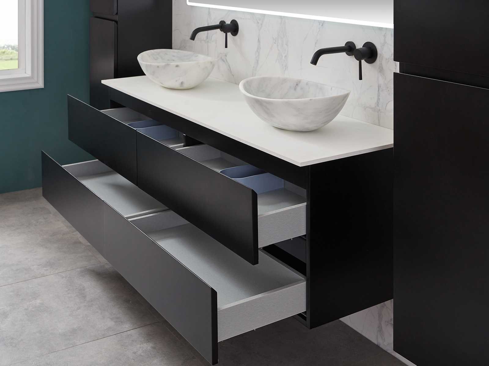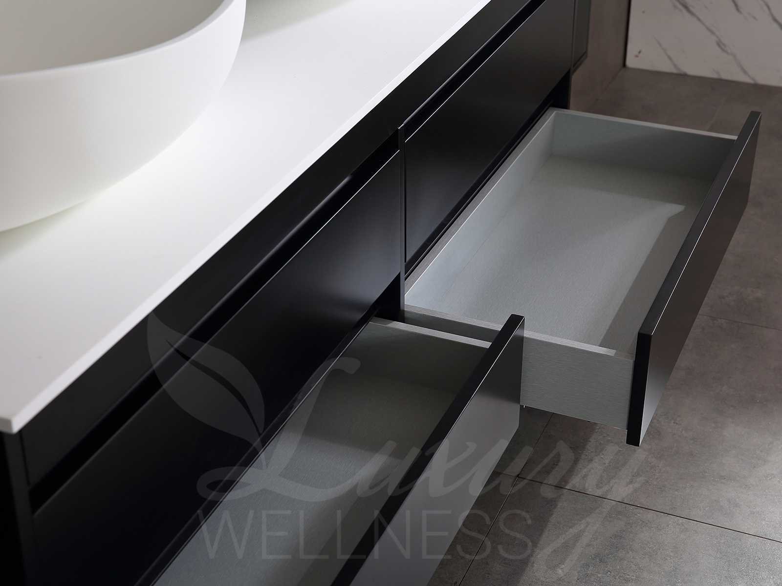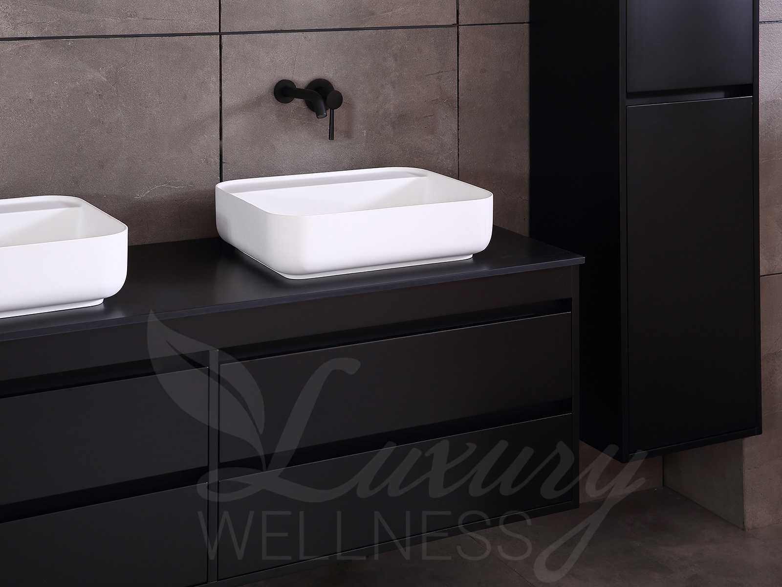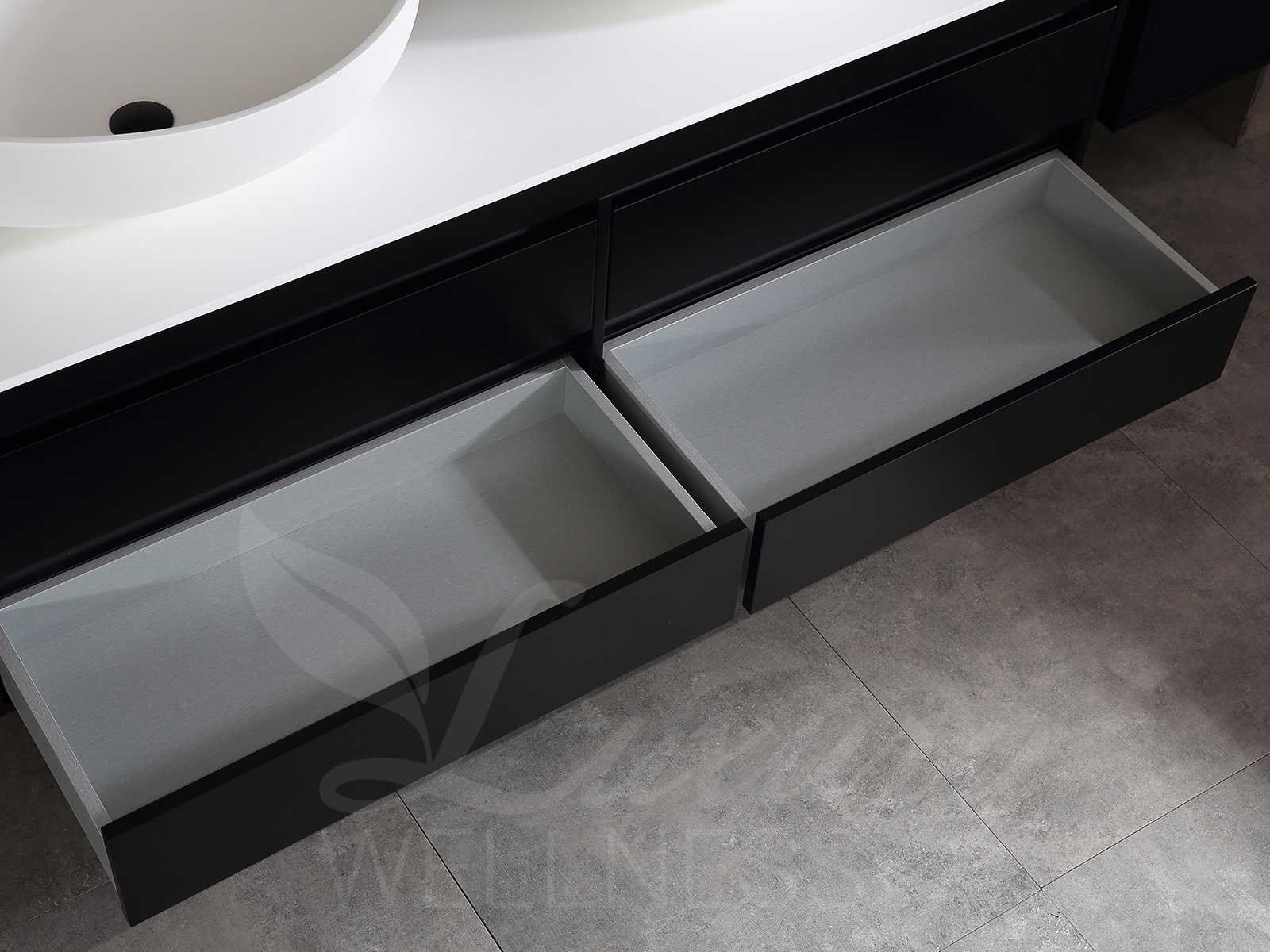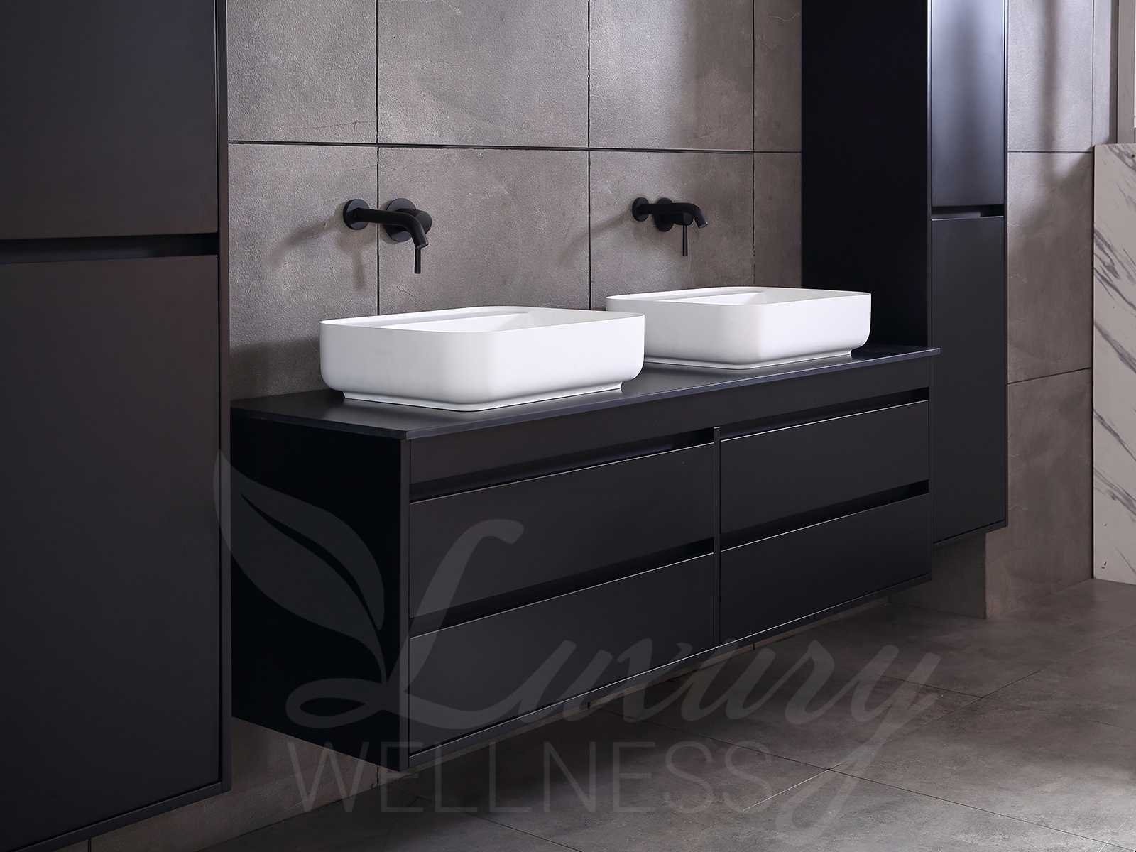 Afmeting meubel bxdxh 160x49x50cm - hangkast 35x35x160cm (1 hangkast zit bij de aankoop), kleur mat zwart, materiaal 2cm 5-laags multiplex(zeer sterk en vochtbestendig),met solid surface topplaat indien gewenst(mat wit of mat zwart), Hangkast softclose deuren en extra planchets (hangkast is universeel en kan zowel links als rechts naast het meubel gehangen worden), kranen exclusief , Lades 4 stuks met softclose, Wasbakken solid surface, natuursteen(met en zonder kraangaten beschikbaar de vaste wastafels) of italiaans marmer (keuze uit diverse modellen en kleuren van de laatste foto's graag doorgeven op afhaaldag), led spiegel met verwarming/radio/klok en vergrootglas met ledverlichting rondom aan de voorkant met 3 verstelbare kleuren led 3000/4500/6000k led-dioden (geel/blauw/wit licht) met de volgende opties digitaal display, geïntegreerde vergrotingsspiegel van 10cm doorsnede met ledverlichting(vergroot 3x), digitale klok, digitale temperatuur aanduiding, 220volt stekker(plug and play), afvoeren exclusief, Conditie: Nieuw in doos, Bijzonderheden 2 jaar garantie, gaten zijn niet in het topblad voorgeboord in u voor deze keuze gaat zodat u zowel muurkranen als kranen vanaf het blad kunt gebruiken of zelf 1 wastafel in plaats van 2 stuks(gaten boren is geen enkel probleem en zeer gemakkelijk uit te voeren bij solid surface) compleet met installatiekit, natuursteen wastafels zijn behandeld met coating, zeer hoge kwaliteit, let op! de hangkast mag geruild worden voor een set kranen en popup afvoeren naar keus of als u een extra hangkast nodig graag op de afhaaldag aangeven voor een passende aanbieding Merk: Mawialux Model: Brandon Hoogte: 50cm Lengte: 49cm Breedte: 160cm Materiaal: 2cm massief top en 5-laags multiplex(zeer sterk en vochtbestendig) Kleur: Mat zwart Kraan: exclusief Wastafel: diverse keuzes Waskom: diverse keuzes Spiegel met verlichting: ja Verlichting: ja Lades: 4 Softclose: true Bevestigingsmateriaal: true Zijkast: ja 1x