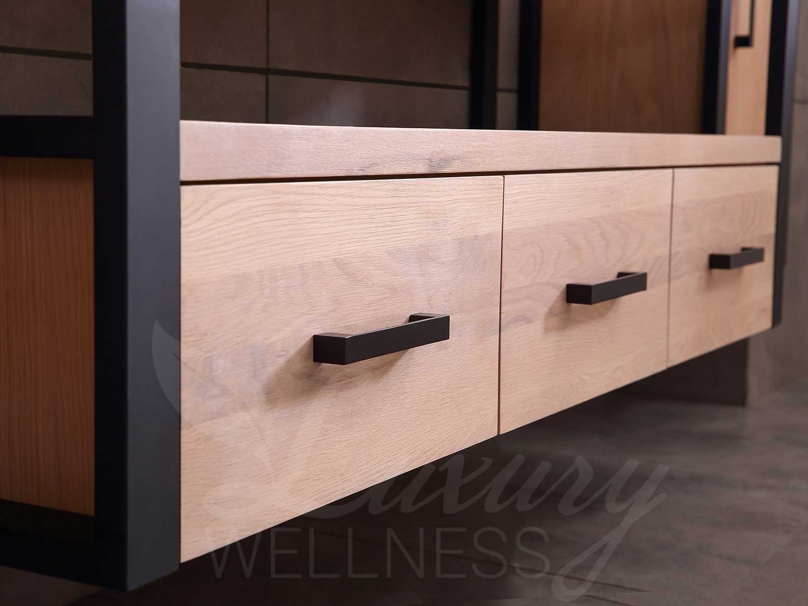 Afmeting meubel bxdxh 150x50x55cm - hangkasten 45x35x160cm(5cm rvs frame per kant), kleur eiken natural, materiaal 2cm massief eiken (front) met 3cm massief top overige en 5-laags multiplex(zeer sterk en vochtbestendig), Hangkast softclose deuren en extra planchets (hangkast is universeel en kan zowel links als rechts naast het meubel gehangen worden), kranen exclusief , Lades 2 stuks met softclose, Wastafel natuursteen of solid surface (keuze uit diverse modellen van de laatste foto's, kraangaten zijn nog niet in het top voorgeboord zodat u muurkranen of kranen uit het blad kan gebruiken, led spiegel met verwarming/klok en vergrootglas met ledverlichting, geïntegreerde vergrotingsspiegel van 10cm doorsnede met ledverlichting(vergroot 3x), digitale klok, digitale temperatuur aanduiding, 220volt stekker(plug and play), verwarming ter voorkoming van condens, 1.5mm kopervrij met explosion-proof laag met dezelfde functie als gehard glas(de spiegel mag geruild worden voor een ander model/type), afvoeren exclusief, Conditie: Nieuw in doos, Bijzonderheden 2 jaar garantie, compleet met installatie materiaal, zeer hoge kwaliteit, let op! 1 hangkast mag geruild worden voor een set kranen en popup afvoeren naar keus (graag op de afhaaldag aangeven) Merk: Mawialux Model: Philip Hoogte: 55cm Lengte: 50cm Breedte: 150cm Materiaal: Eiken Kleur: Eiken white wash Kraan: exclusief Wastafel: diverse keuzes Waskom: diverse keuzes Spiegel met verlichting: ja Verlichting: ja Lades: 3 Softclose: true Bevestigingsmateriaal: true Zijkast: ja 2x Afmeting hangkast: LxBxH 35x45x160