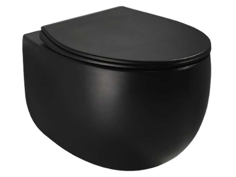 Afmetingen lxbxh 50x37x36cm, materiaal keramiek en kunststof, kleur mat zwart, toiletbril softclose met deksel, afvoer p-trap, gewicht 30 kg, rimless flushing (geen spoelrand), compleet geleverd met bevestigings materiaal, universeel toepasbaar op ieder inbouwreservoir, quick release deksel Merk: Mawialux Model: Fresno Kleur: Mat zwart