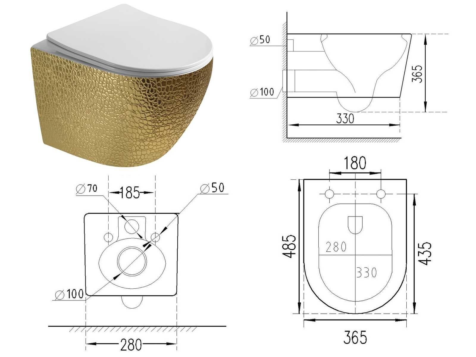 Ribbel gouden afwerking met witte deksel, afmetingen lxbxh 49x37x37cm, materiaal keramiek en kunststof, afmetingen lxbxh 49x37x37cm, materiaal keramiek en kunststof, toiletbril softclose met deksel, afvoer p-trap, gewicht 30 kg, rimless flushing (geen spoelrand), compleet geleverd met bevestigings materiaal, universeel toepasbaar op ieder inbouw reservoir, quick release deksel, toilet is gegoten en geglazuurd en later in in de oven verhard waardoor deze zeer krasbestendig is Merk: Mawialux Model: Alaska Kleur: Goud