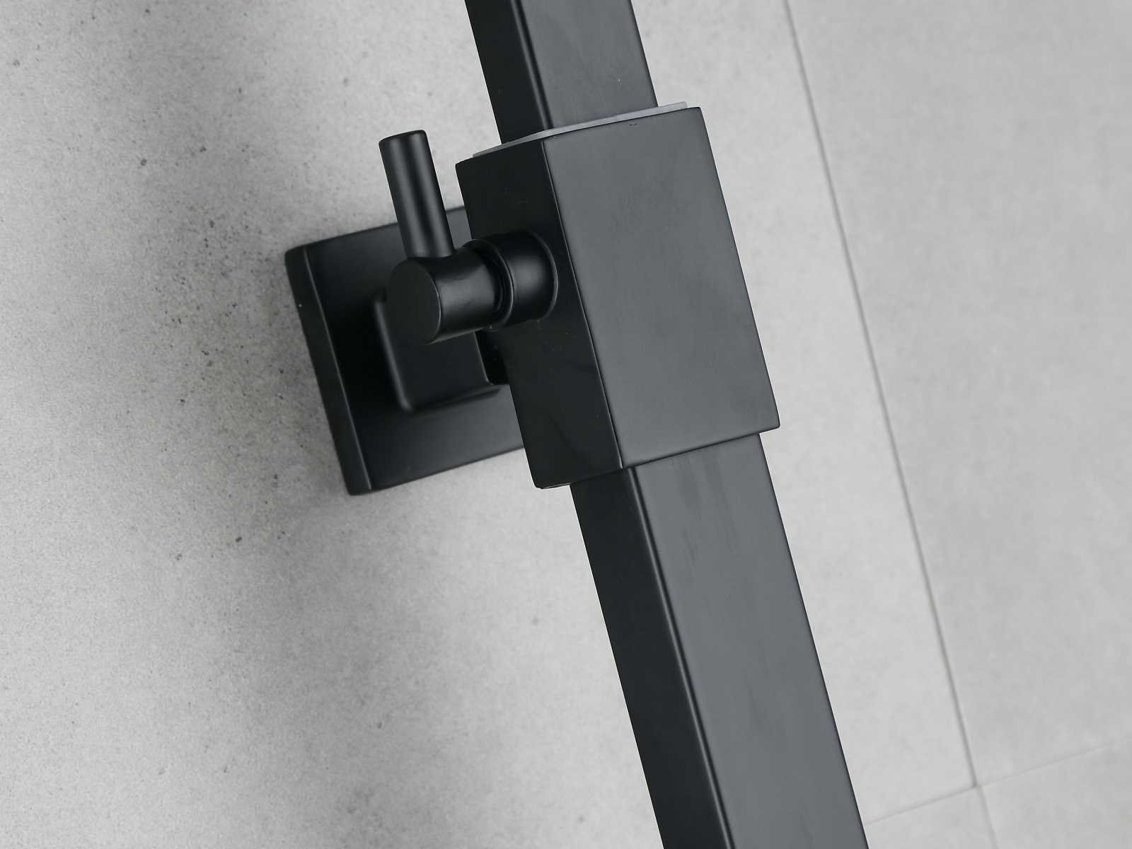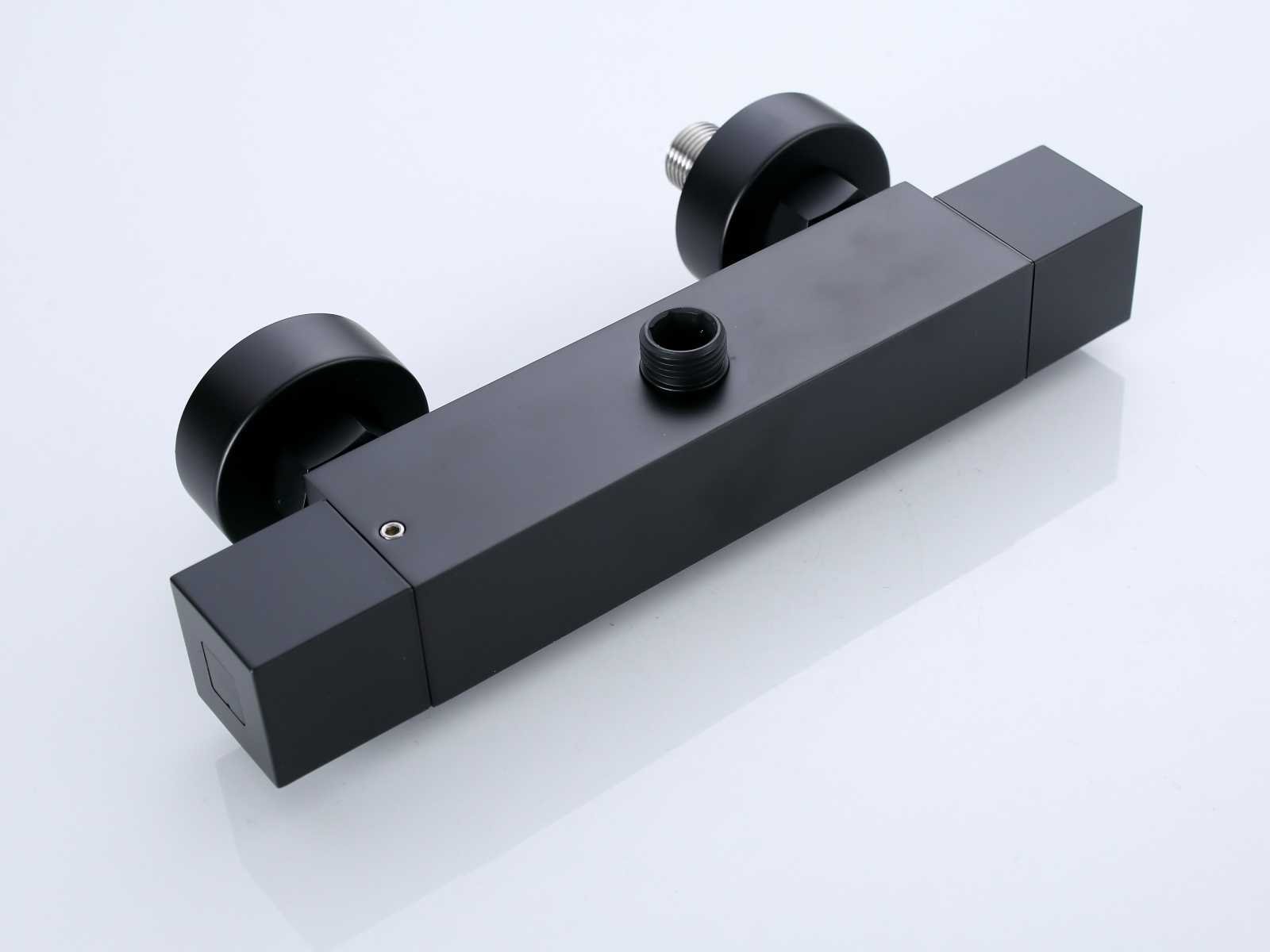Materiaal: messing en RVS. Kraan: thermostaatkraan. Binnenwerk: keramisch. Douchekop: plat design 30 x 30 cm van RVS. Handdouche: verstelbaar met doucheslang. Hoogte: verstelbaar. Voorzien van: douchekop met kunststof wateruitlopen om gemakkelijk kalkaanslag te verwijderen. RVS douchekop en keramisch binnenwerk. Bijzonderheden: h.o.h. afstand van 150 mm (incl. s-koppelingen). Merk: Mawialux Model: Cynthia Kleur: mat zwart