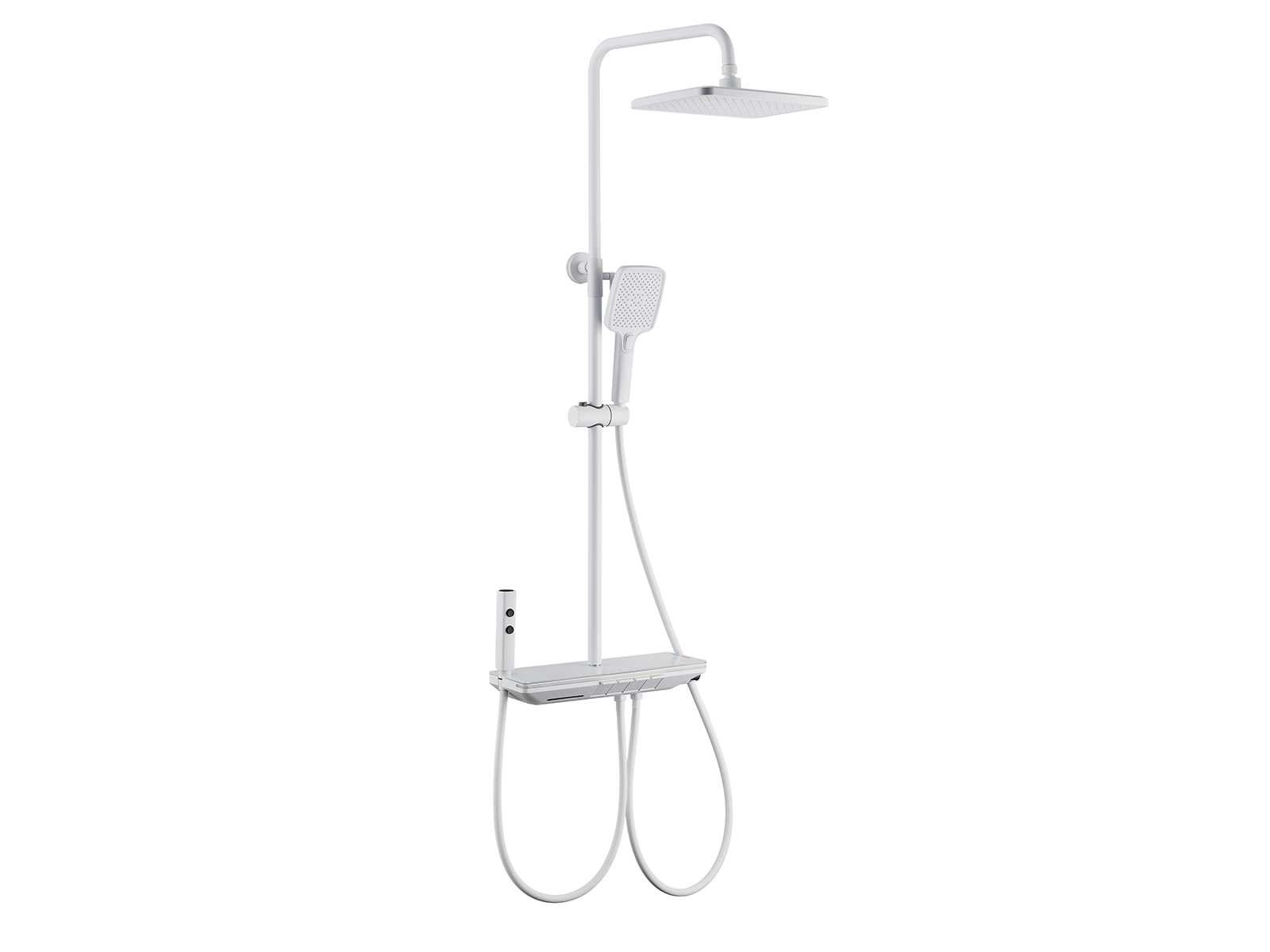 De doucheset is uitgerust met vier functies. Hoofddouche, 2x losse handdouche en badkraan uitloop. Door de aanwezigheid van de baduitloop is deze doucheset uitermate geschikt voor douchebaden. Naast deze vier functies is de doucheset uitgerust met een digitaal display waarop je in een oogopslag de temperatuur van het water kunt aflezen. Daarnaast word er gebruik gemaakt van keramische binnenwerken zodat je jarenlang plezier zult hebben van jouw regendoucheset. Doordat de doucheset in hoogte verstelbaar is past hij in vrijwel elke badkamer! Hoogte verstelbaar 80 - 120 cm. Materiaal: RVS / messing. Kleur: gunmetal grey Kraan: mengkraan. Binnenwerk: keramisch. Douchekop: 30x20 cm kantel/draaibaar. Handdouche: verstelbaar met doucheslang en 2 functies. Voorzien van: digitale micromotor aansturing door middel van waterflow. Geen stroom nodig. Temperatuur digitaal afleesbaar. Tijdsduur digitaal afleesbaar. Keramisch binnenwerk. Badkraan uitloop (waterval). Bijzonderheden: waterfuncties worden bediend door druktoetsen (meerdere functies hierdoor tegelijk mogelijk), h.o.h. afstand van 150 mm. Merk: Mawialux Model: Julian Kleur: mat wit