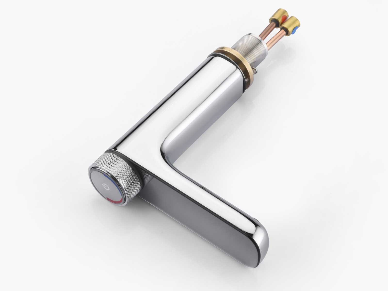 Thermostaatkraan met keramisch binnenwerk, materiaal messing, hoogte 20 cm, voorzien van digitale micromotor aansturing door middel van waterflow, geen stroom/batterijen nodig, temperatuur digitaal afleesbaar en instelbaar, warm en koud waterslang meegeleverd, LET OP: boven een bod van 75,- euro excl BTW en veilingkosten versturen we dit product gratis binnen de benelux naar u toe per post. Merk: Mawialux Model: Eppo Kleur: chroom
