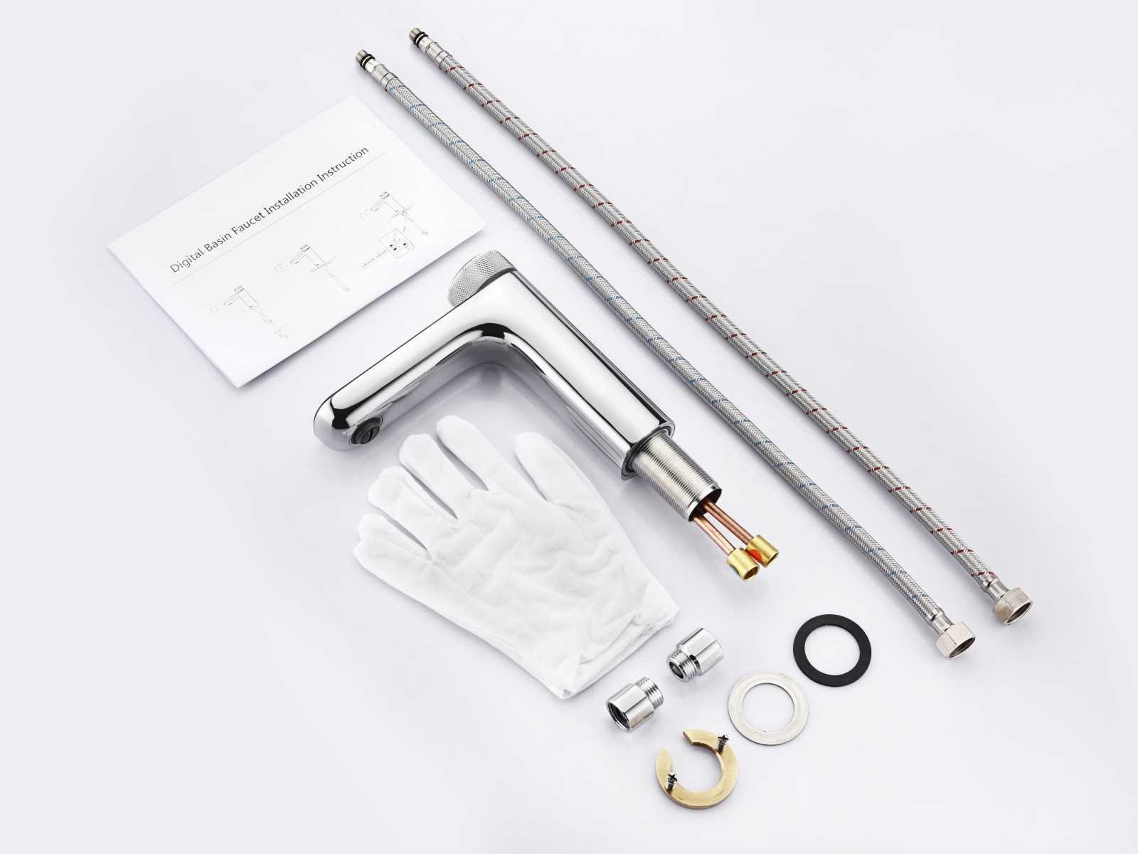 Thermostaatkraan met keramisch binnenwerk, materiaal messing, hoogte 20 cm, voorzien van digitale micromotor aansturing door middel van waterflow, geen stroom/batterijen nodig, temperatuur digitaal afleesbaar en instelbaar, warm en koud waterslang meegeleverd, LET OP: boven een bod van 75,- euro excl BTW en veilingkosten versturen we dit product gratis binnen de benelux naar u toe per post. Merk: Mawialux Model: Eppo Kleur: chroom
