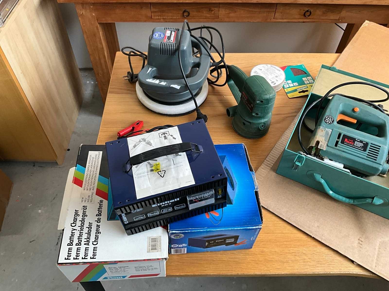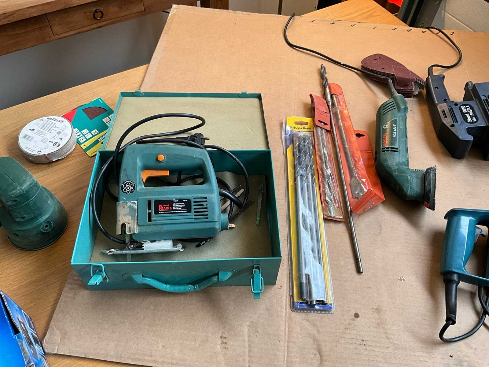 Bestaande uit boormachine, decoupeerzaag,schuurmachines, poetsmachine, acculader, figuurzaag machine.