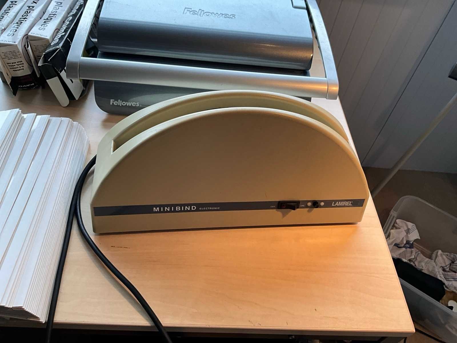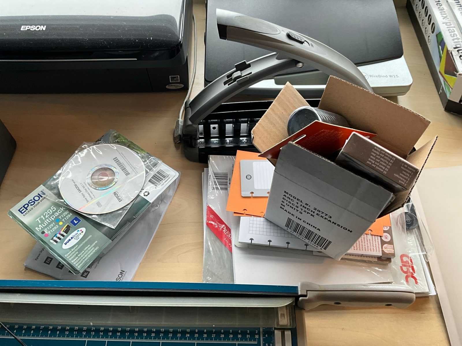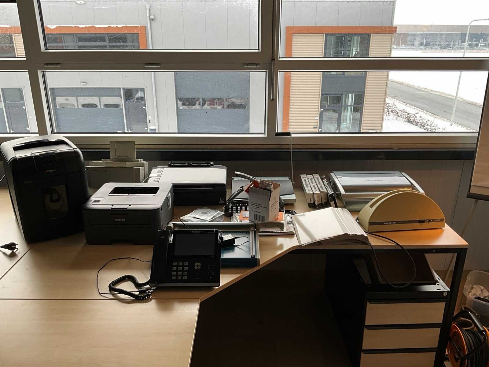 Bestaande uit 2x printer, papier vernietiger, telefoon, papiersnijder,