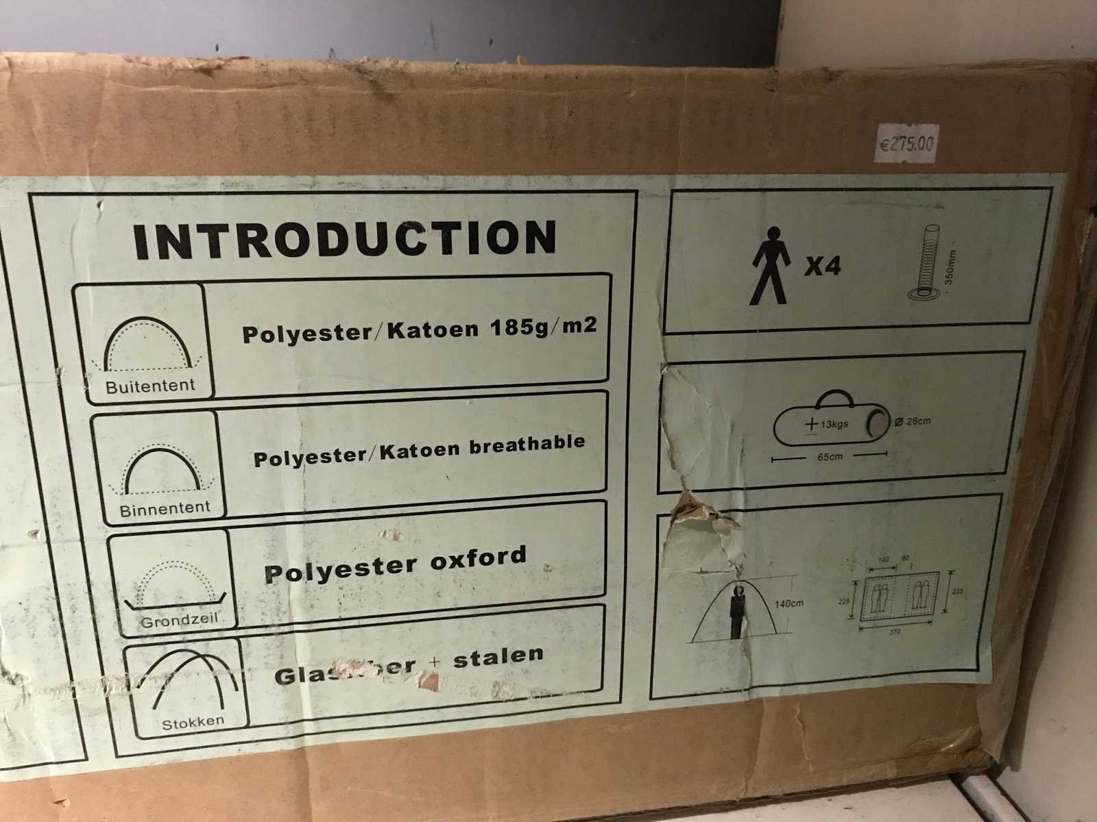 Merk: BaseCamp Model: Cancun 4 XL Gewicht: 13kg Materiaal: Polyester Katoen