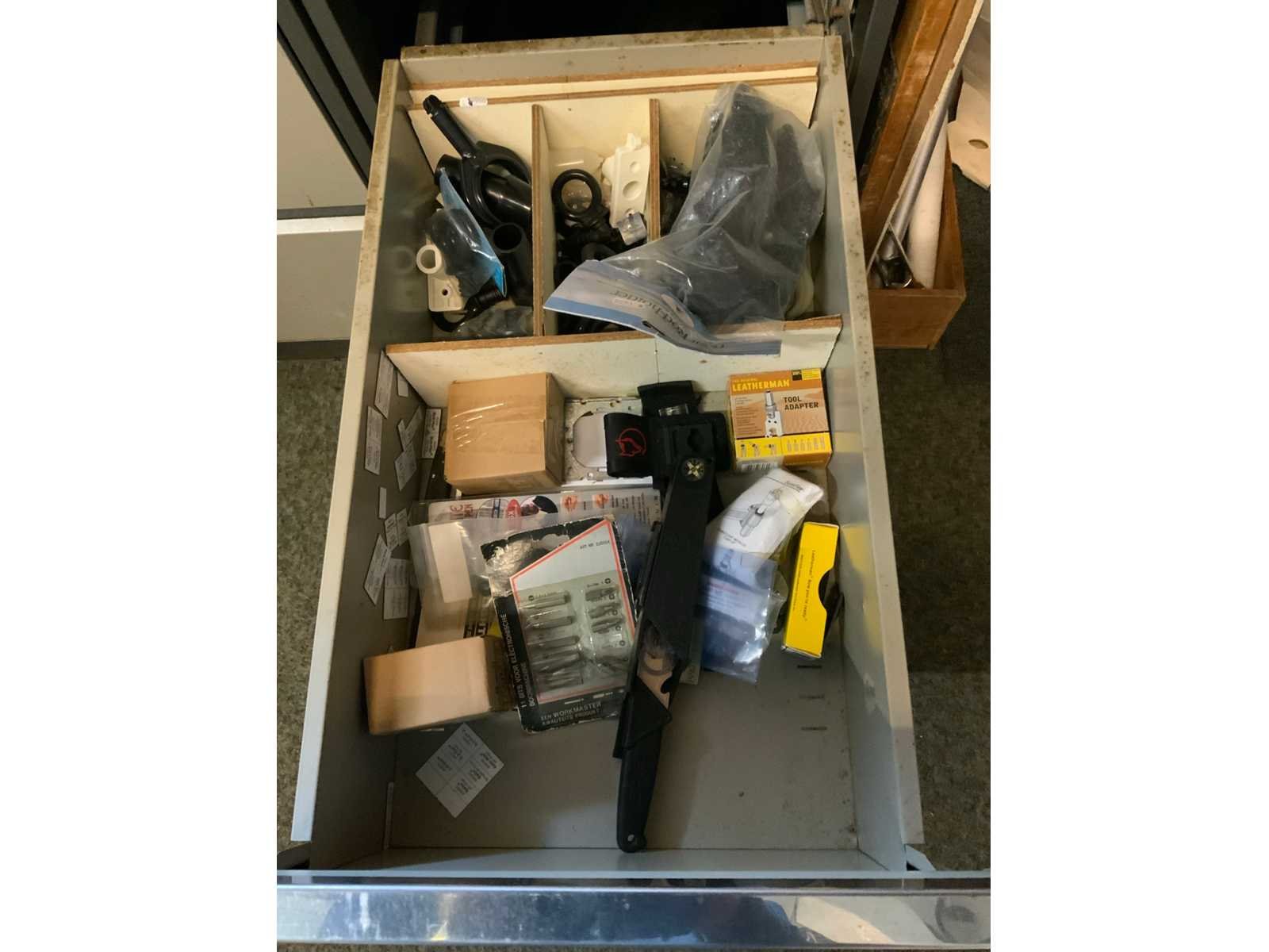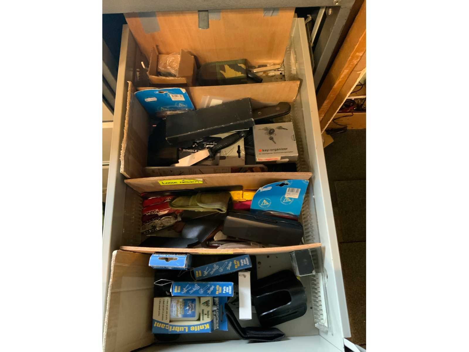 Afmeting kast 47,5x70x135cm met inhoud waaronder messen kompassen en roeidollen (excl. wat er bovenop ligt)