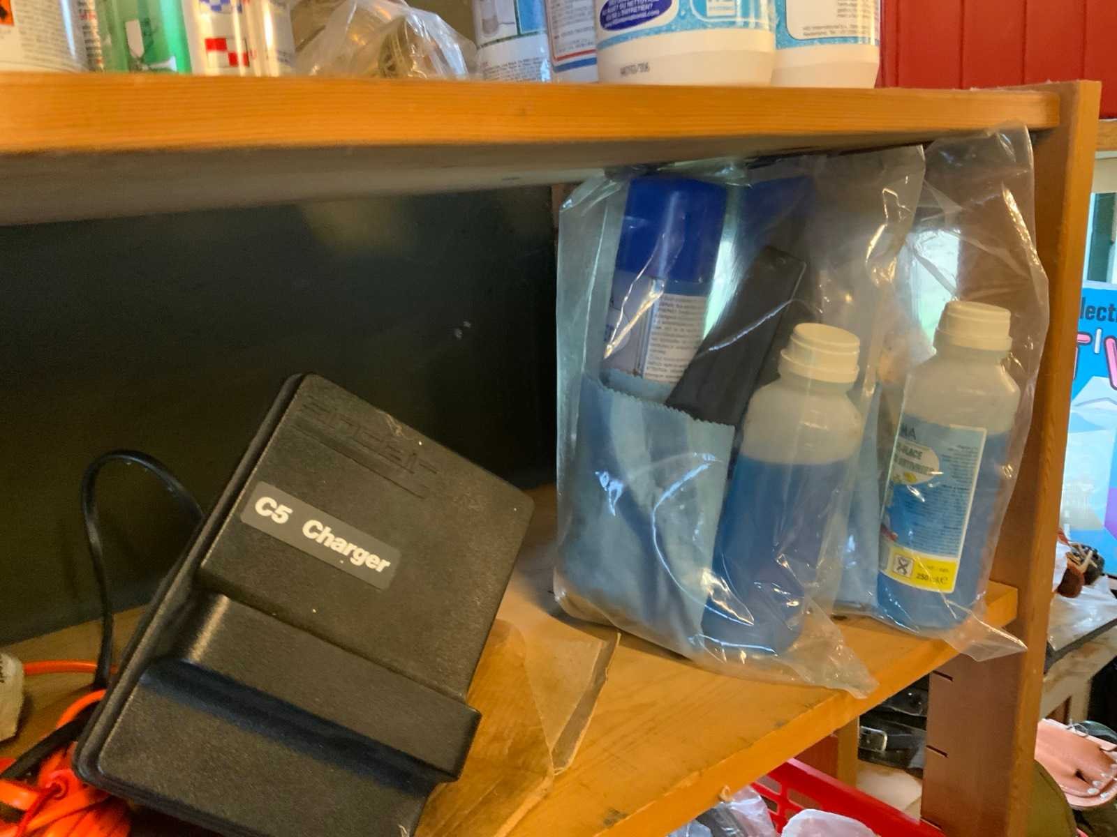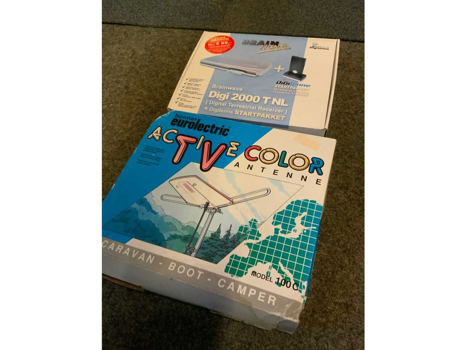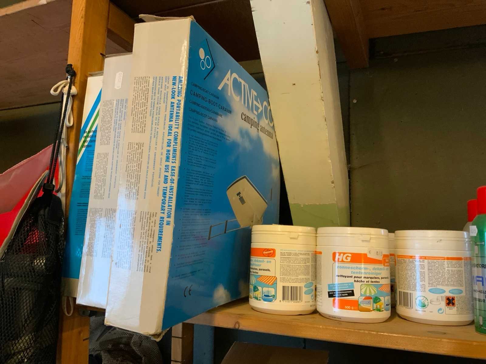 Waaronder 5 campingantennes etc op 3 planken