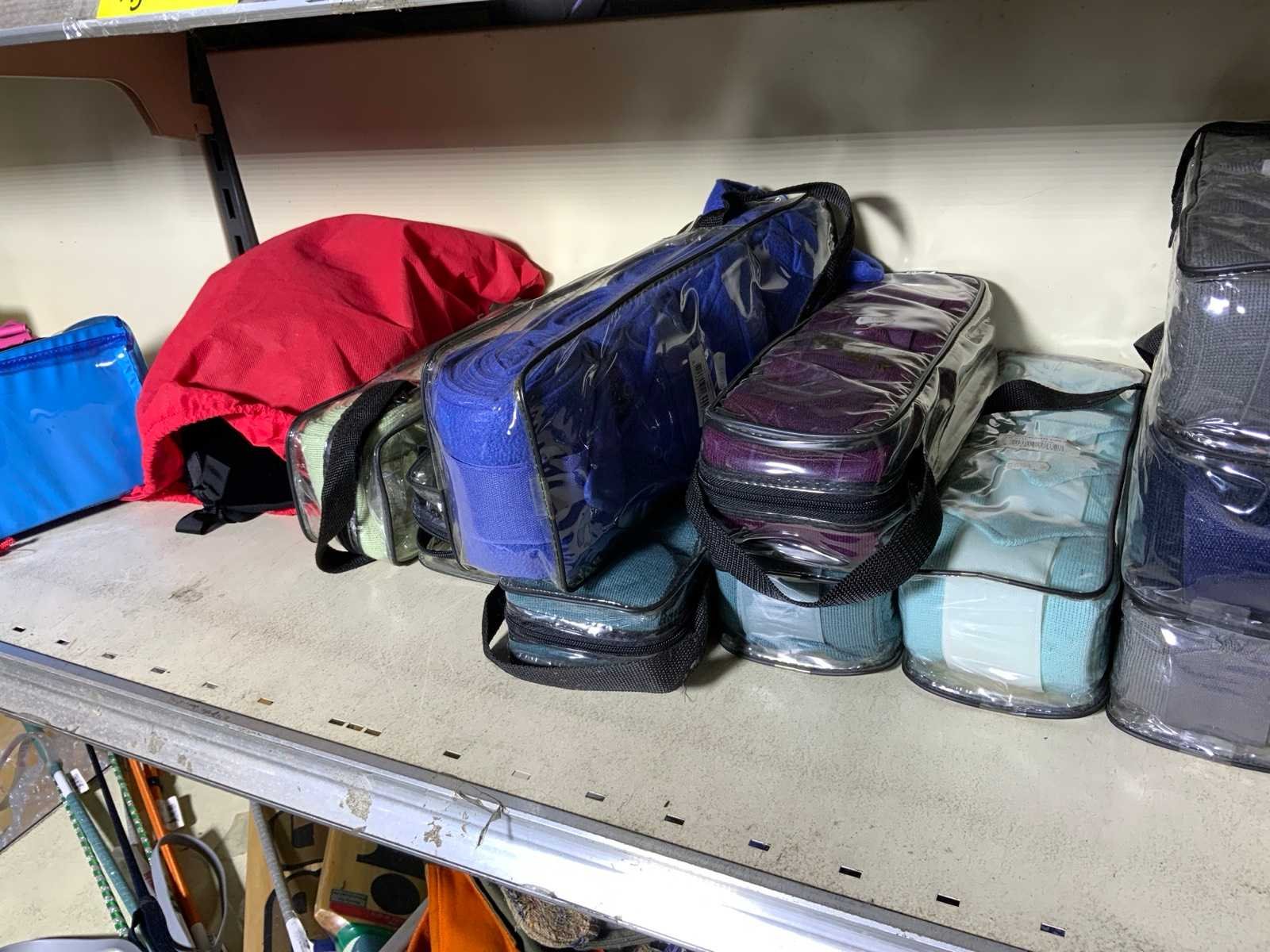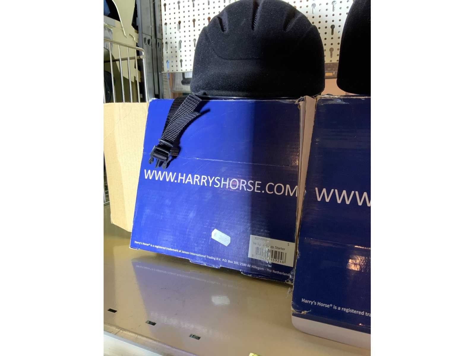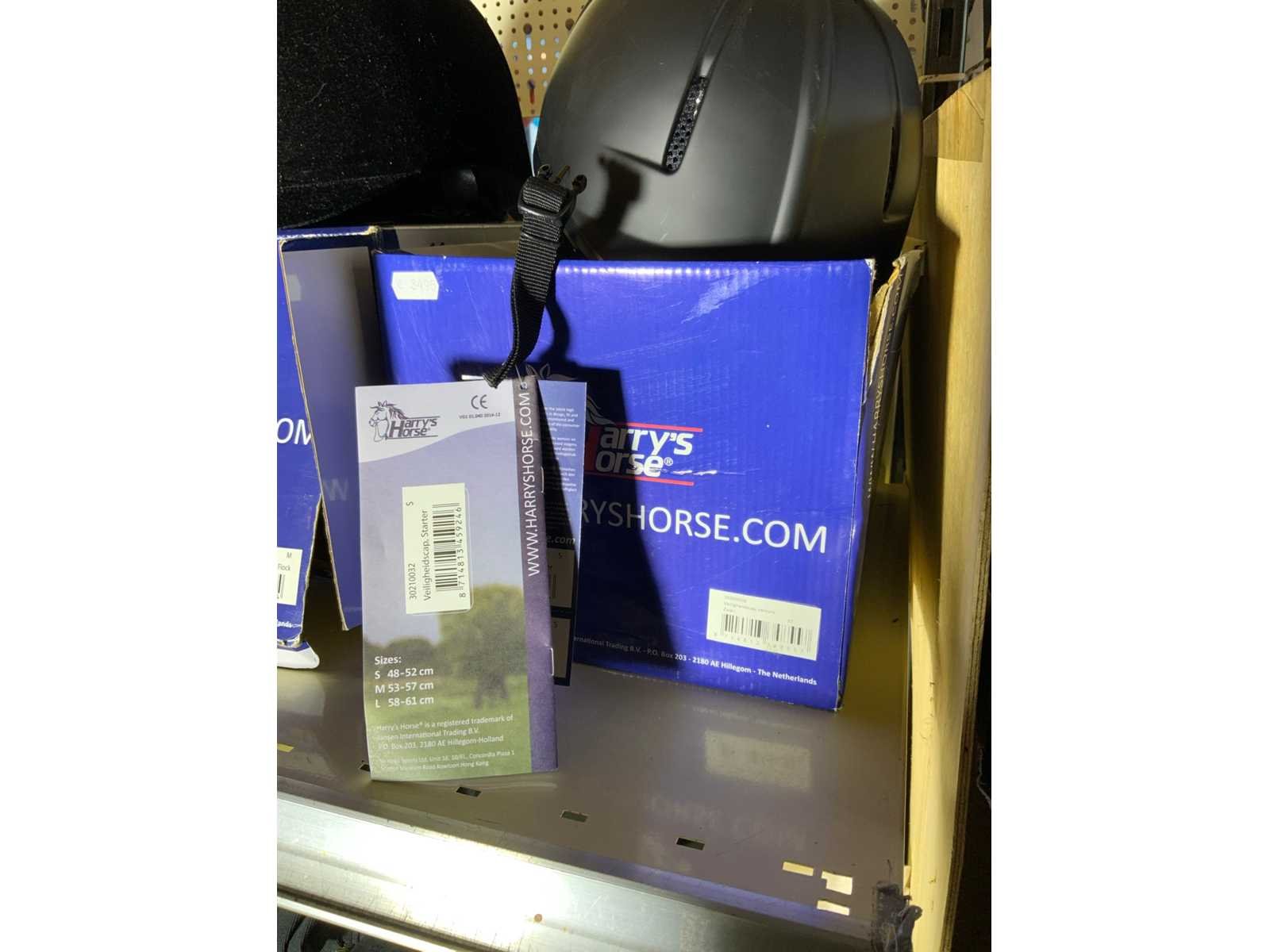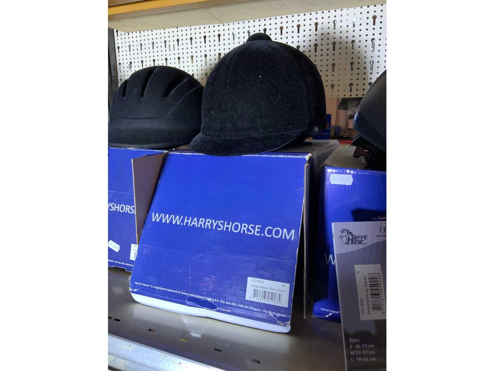 Op 4 schappen waaronder 3 caps chaps kinderrijbroeken bandages zweepjes en divers