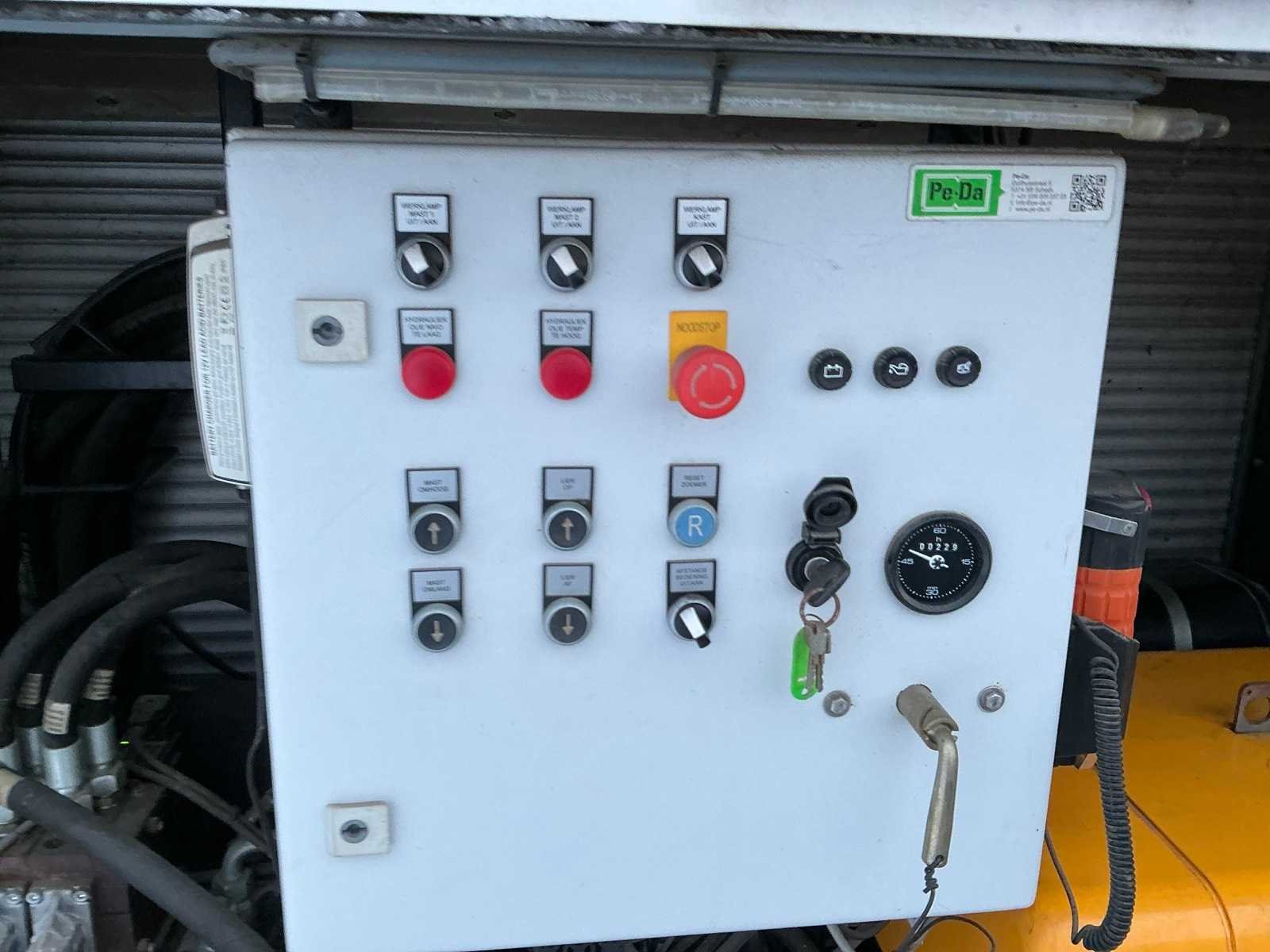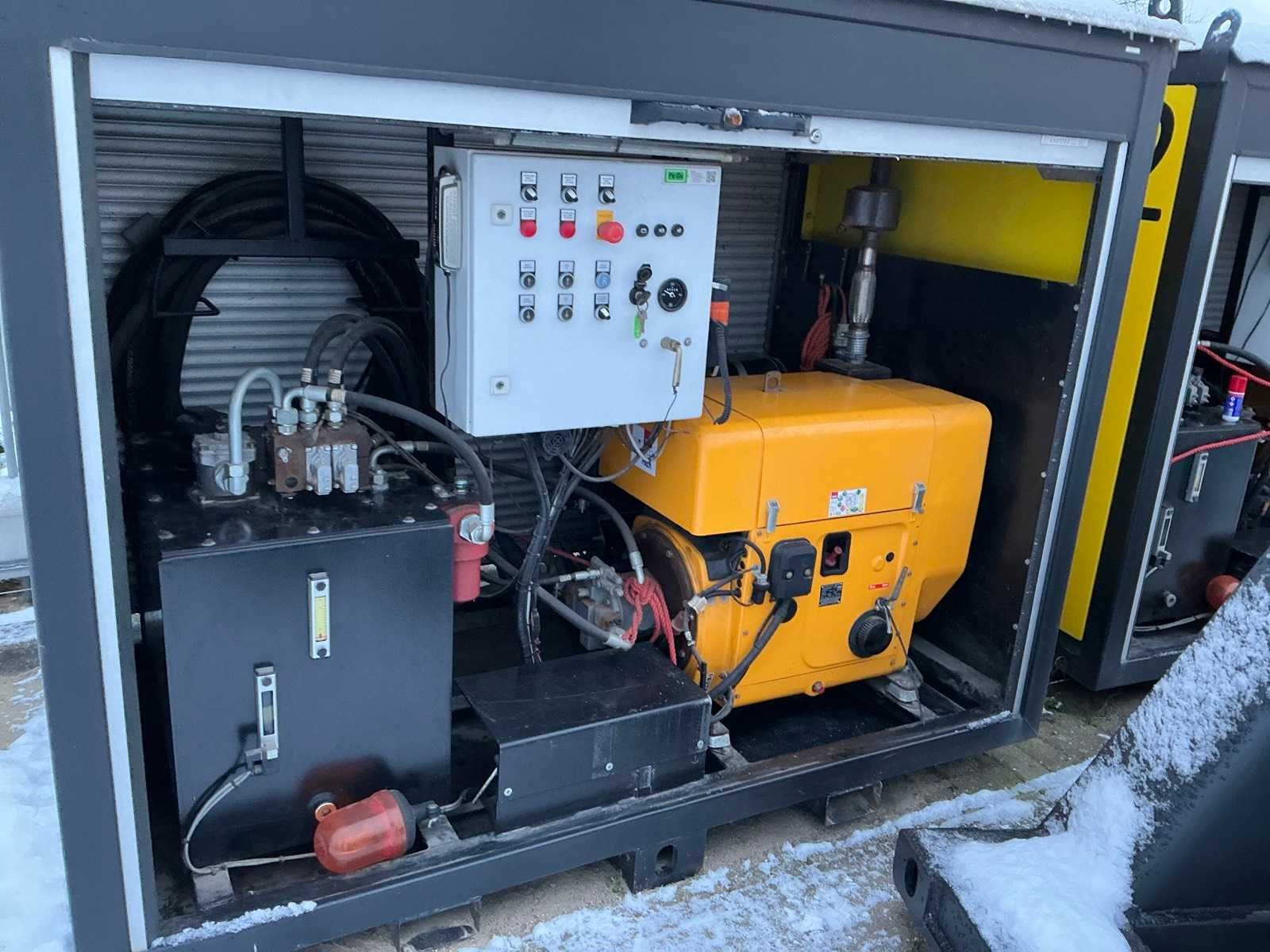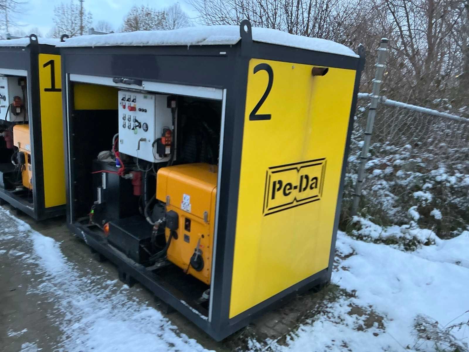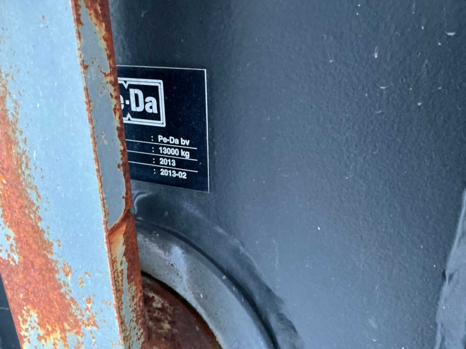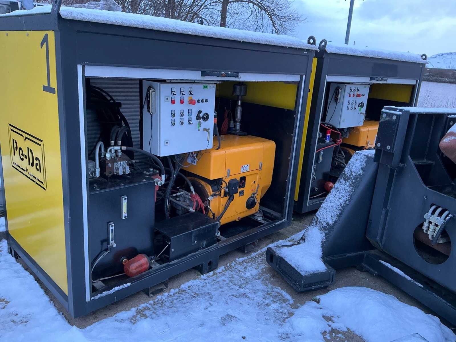 Afmeting spudpaalkantelaar met spudpaal per stuk circa 14000mm, breedte 18600mm, hoogte 18500mm, gewicht per stuk circa 14 Ton, hydraulische spudpaallier capaciteit hijskracht 10 Ton, lengte spudpaal per stuk circa 12000mm, diameter 610mm, gewicht per stuk 2800kg, Hydraulisch pompaggregaat voorzien van Deutz 3L41C 3 cilinder luchtgekoelde geluidgedempte dieselmotor, 230volt druppellader ten behoeve van de startaccu’s, 4 hijsogen, afmeting aggregaat omkasting per stuk circa 2230x1250x1700mm., gewicht circa 1500kg, dit kavel komt inclusief engineeringsrapport en bouwtekeningen, deze machine is op drie manieren te bedienen: handbediening op aggregaat, via afstandbediening en via nood handles. Merk: PE-DA Type: LBTxH-35-D Bouwjaar: 2013 Serienummer: 2013-01 en 2013-02