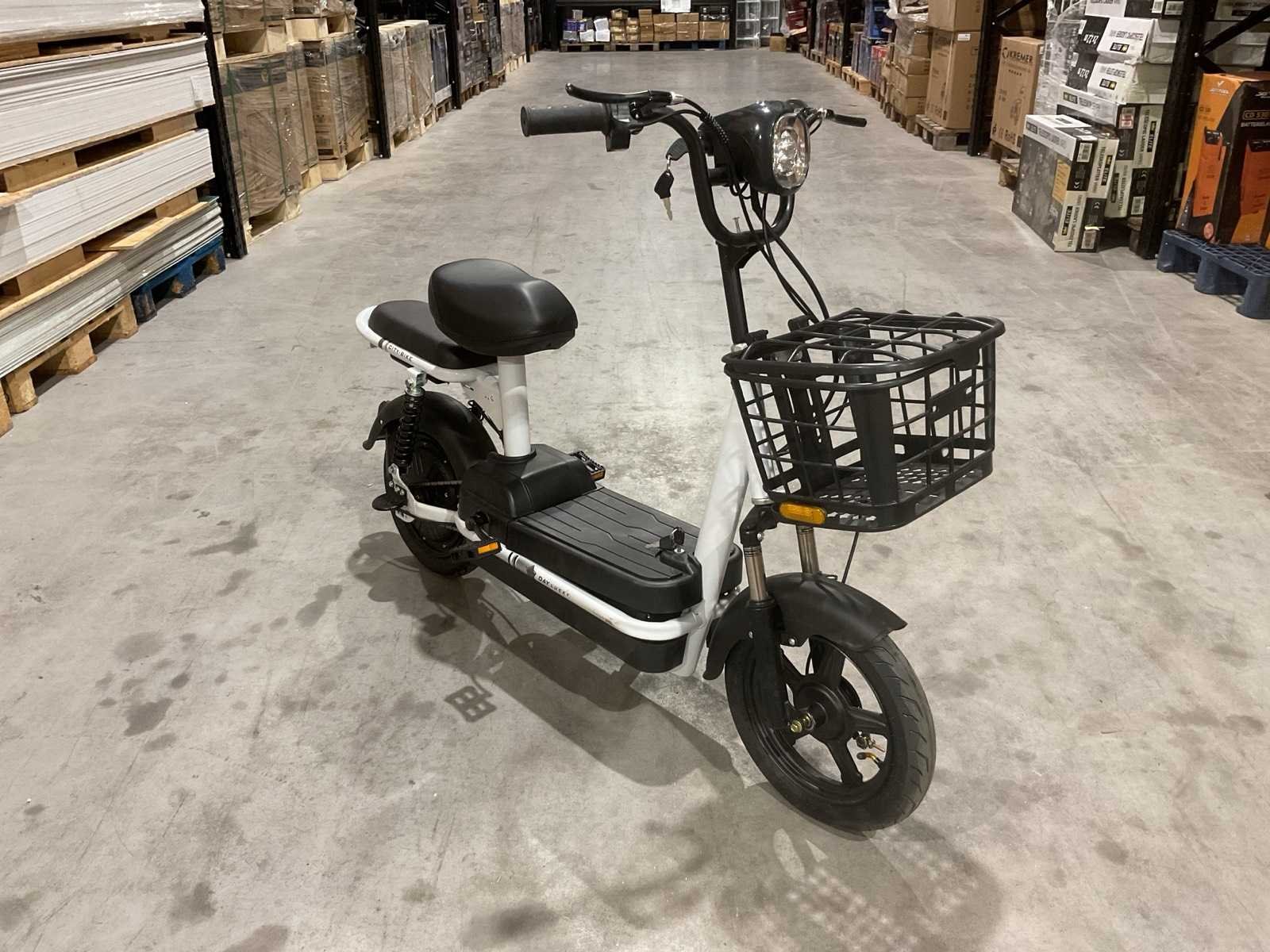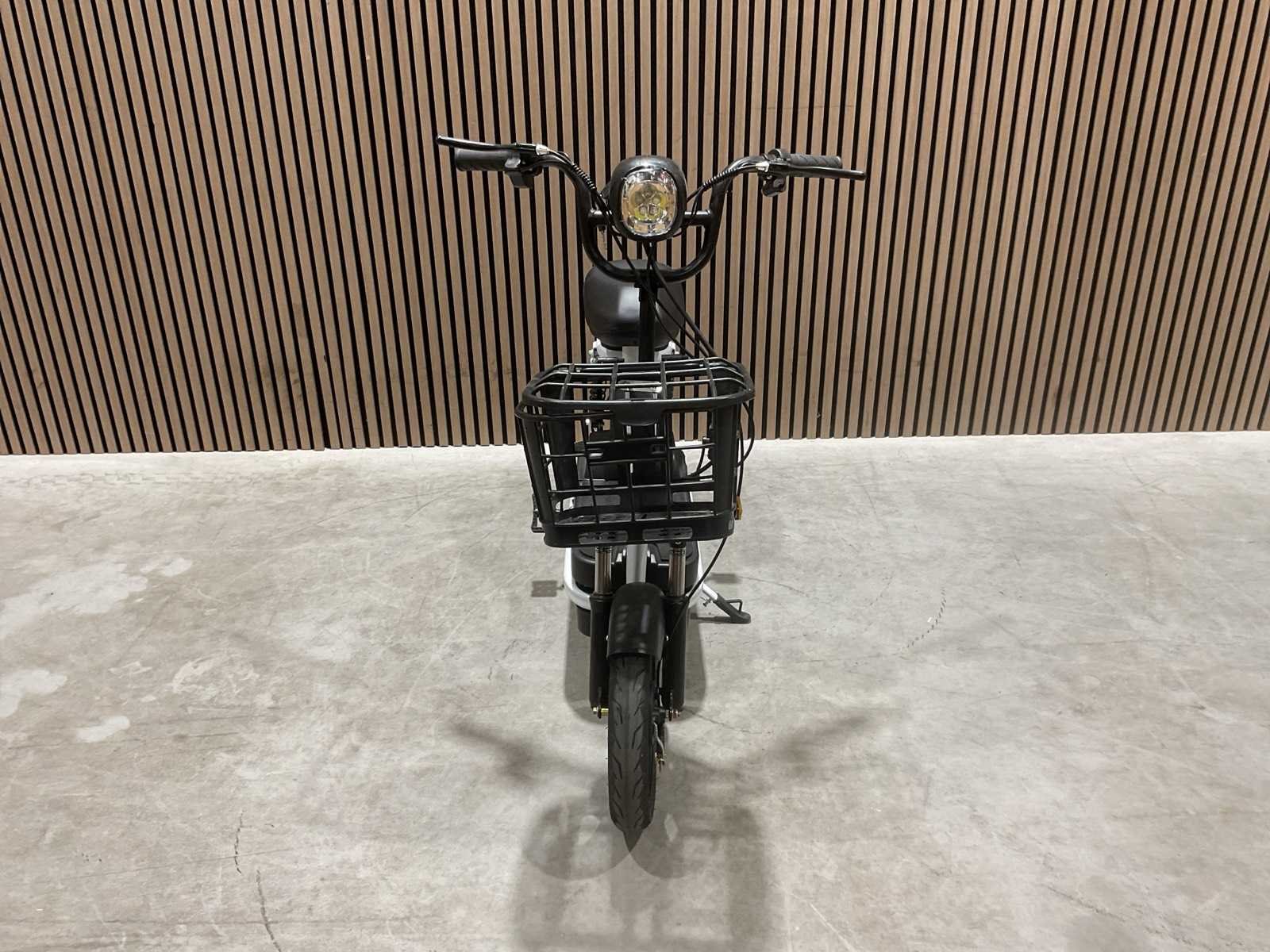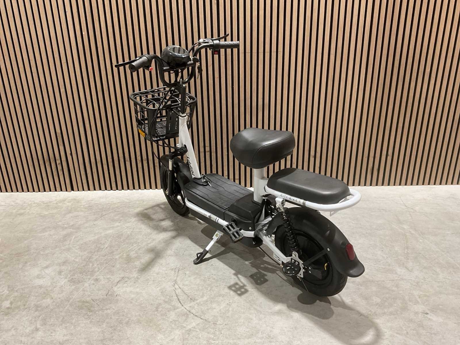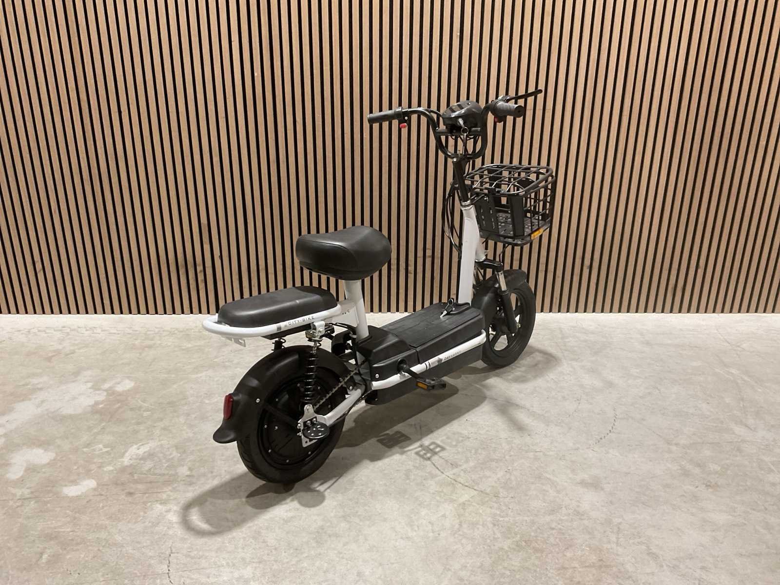 Voorzien van 48V e-bike; Borstelloze achternaafmotor; 14" wielen met 14×2.5 band; Rear hub motor; 350W; Spanning: 48V; Accu: 48V 12Ah; Actieradius: 60 km; Max. snelheid: ±35 km/h; Remsysteem: voor schijf + achter trommel; Max. belasting: 150 kg; Gewicht: ca. 36 kg; Laadtijd: 8–10 uur; Ongebruikt Merk: SKLP Model: City-bike Product type: Happy